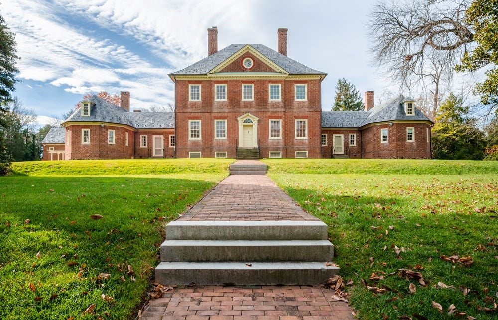 This 1774 Annapolis gem is an architectural love letter to Palladio, courtesy of colonial architect William Buckland. The façade balances geometric perfection with a genteel staircase that curves like a slow waltz. Built for tobacco planter Matthias Hammond, the house’s façade is a study in symmetry, with its central pediment, arched windows, and balanced wings.