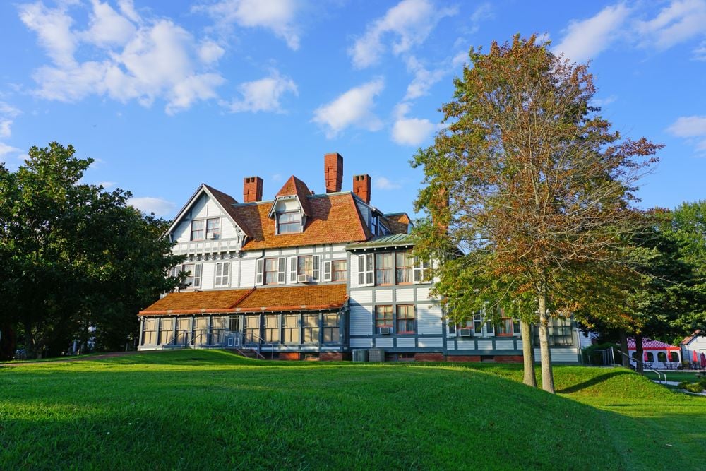 The Emlen Physick Estate in Cape May is a Victorian fever dream come to life. Built in 1879 for the wealthy, eccentric Dr. Emlen Physick Jr., this stick-style mansion stands as one of the finest architectural specimens in New Jersey’s seaside resort town. Designed by Philadelphia architect Frank Furness, the estate is a symphony of sharp angles, decorative trusses, and gables that seem to stretch into eternity. This 18-room house is anything but subtle, from its asymmetrical facade to its oversized brackets and gingerbread details. The roofline is punctuated with a turret and dormers while the house’s interior is equally dramatic, boasting high ceilings, elaborate woodwork, and an array of period furnishings. Dr. Physick, who never actually practiced medicine, was more of a bon vivant than a doctor, and his house reflected his unorthodox tastes. The estate is also significant as a rare survivor of Cape May’s great fires, preserving a piece of the town’s 19th-century charm. Today, it serves as a museum, offering a peek into the eclectic life of its original owner and a window into the architectural artistry of the Victorian era.