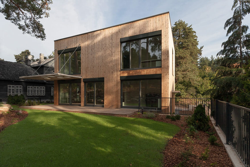 Located in Vilnius, the capital city of Lithuania, this striking home is nestled in the hills of one of the more urbanized residential areas of the city.