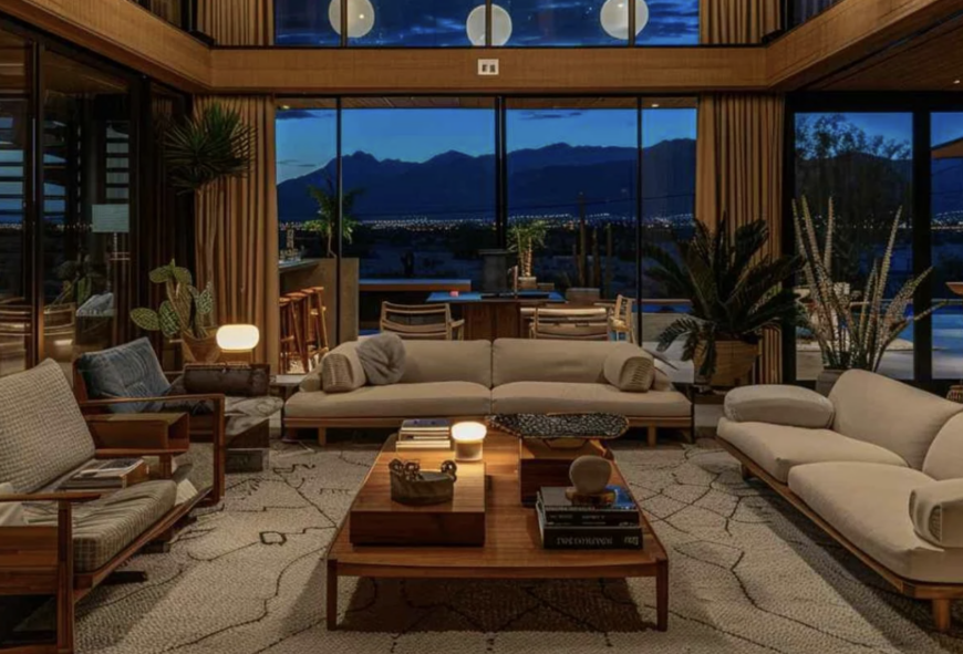 With its expansive views of the desert landscape, this space brings the outdoors in, creating a harmonious blend of nature and luxury. The warm tones and plush furnishings add a layer of comfort, making the room feel inviting and serene. Itโs a perfect example of how Japandiโs minimalist principles can be enhanced with the rich textures and colors of maximalism, resulting in a space that feels both grounded and luxurious.