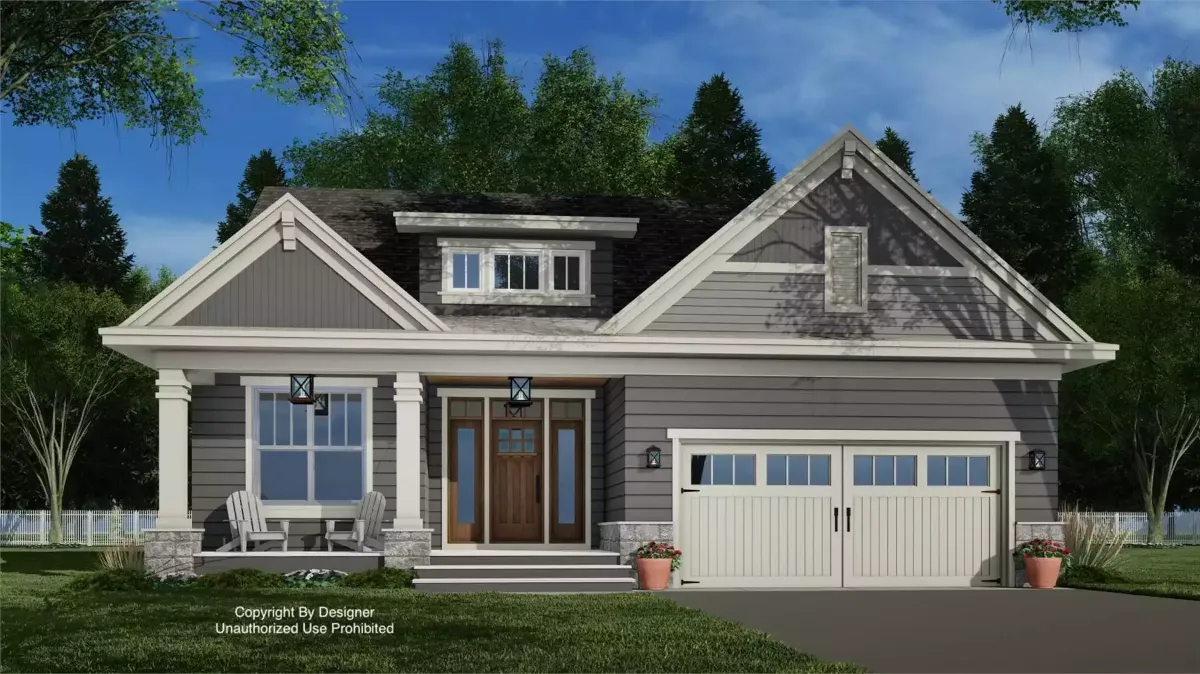 This traditional home blends classic curb appeal with clean, contemporary touches, featuring a welcoming front porch, balanced gables, and a soft mix of horizontal siding and trim details. The façade feels warm and approachable, with just enough architectural depth to give it lasting visual interest.