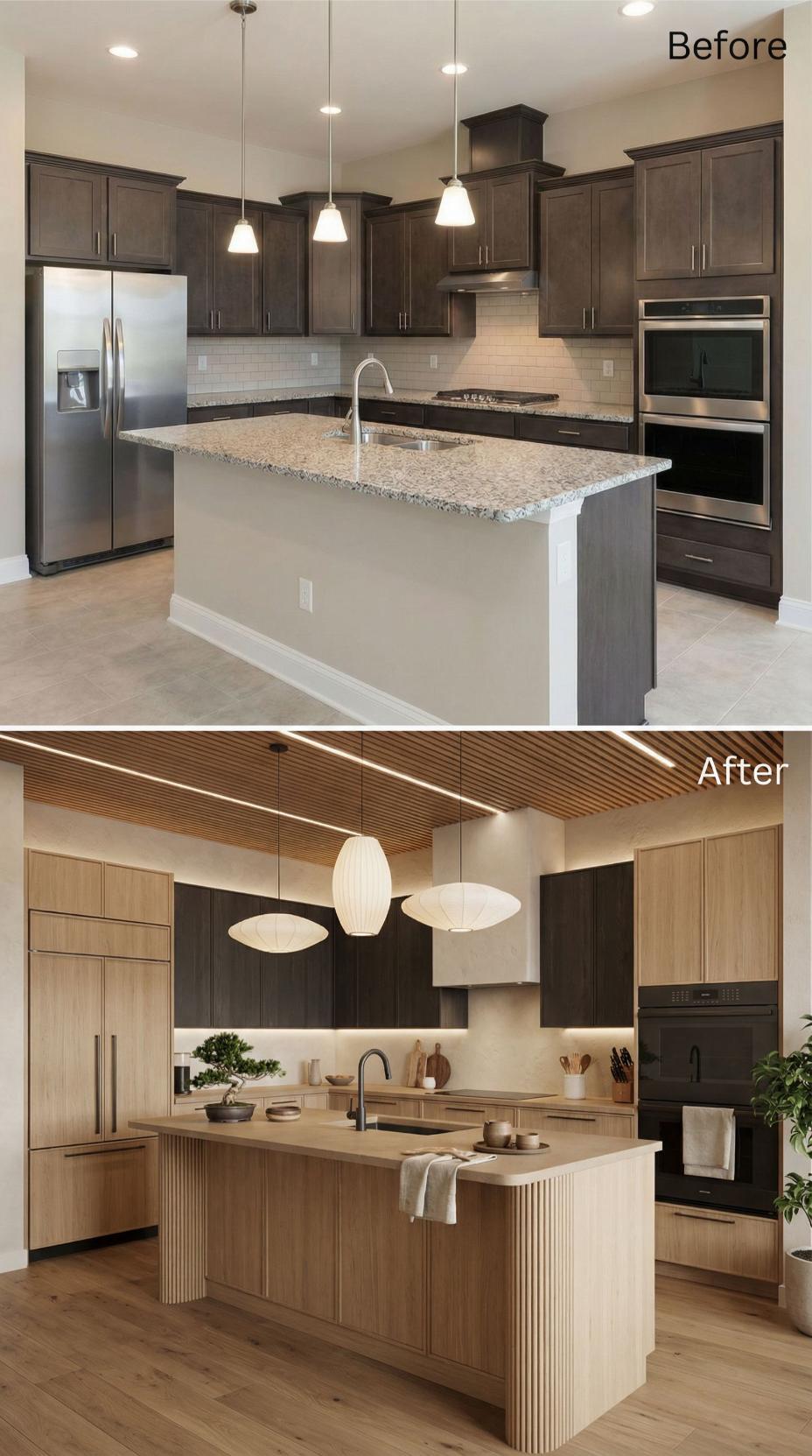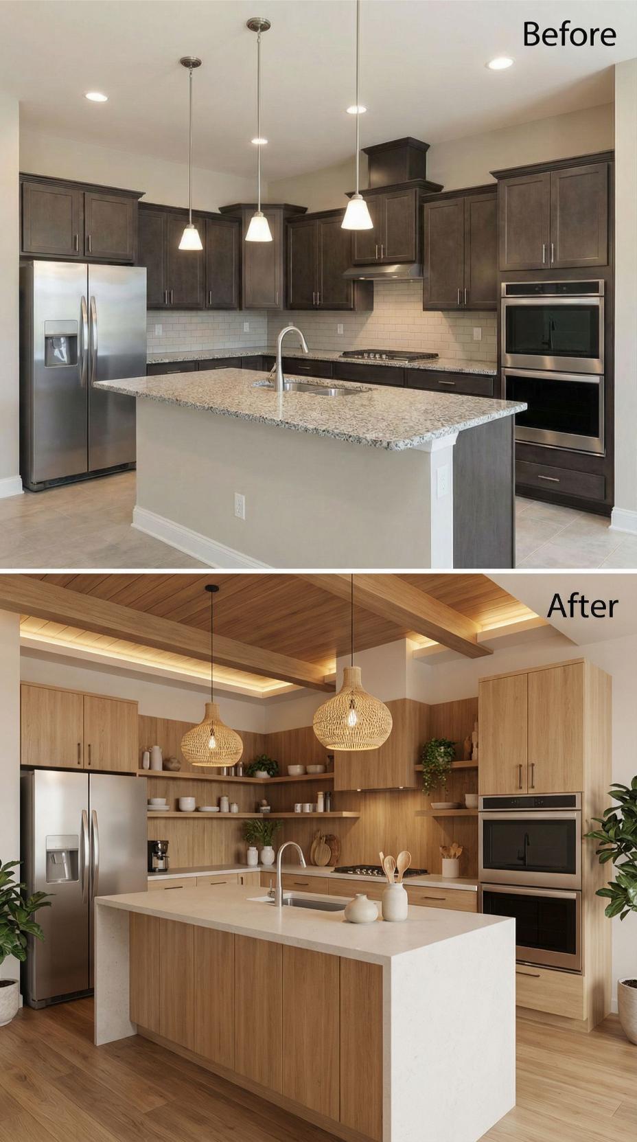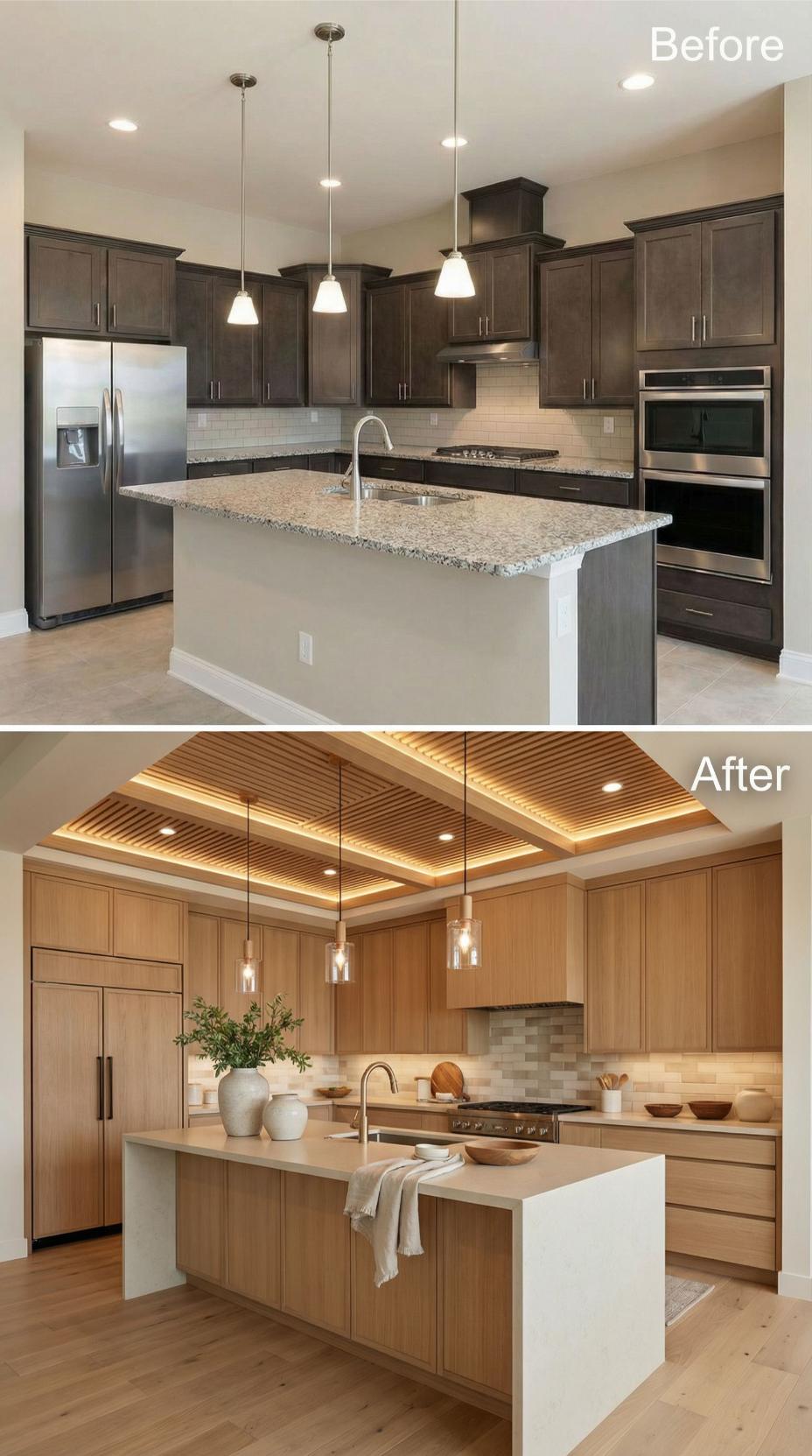 From Builder-Grade Kitchens to Warm Wood Contemporary Sanctuary