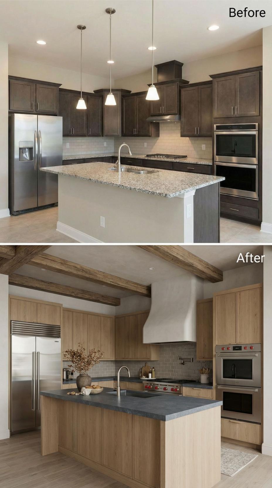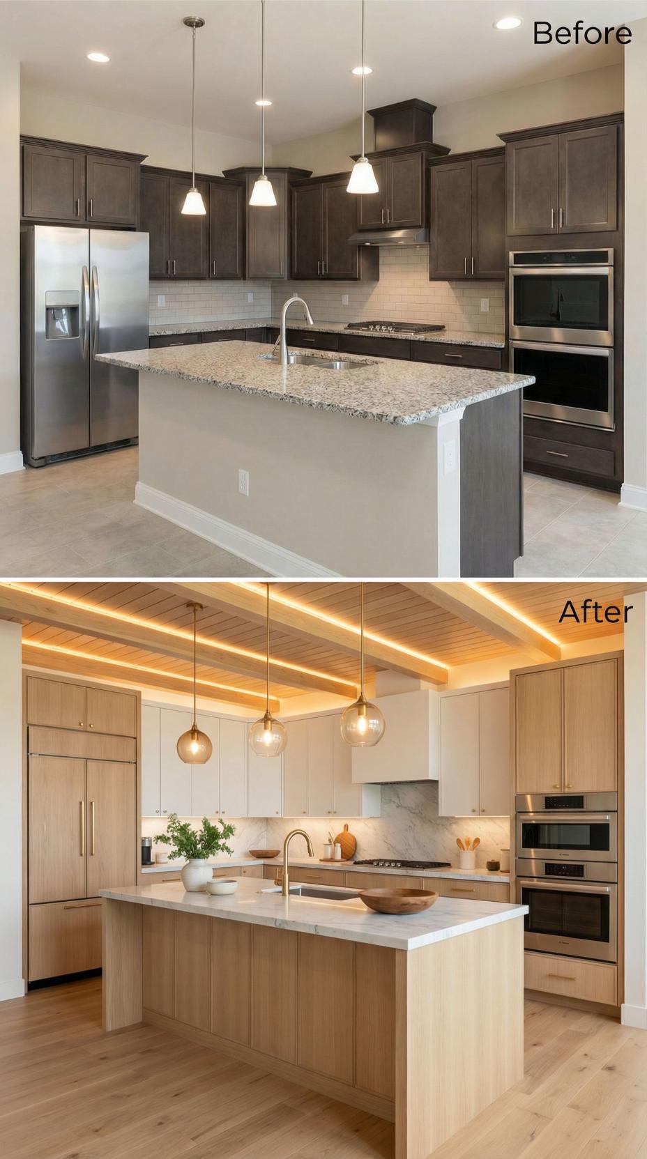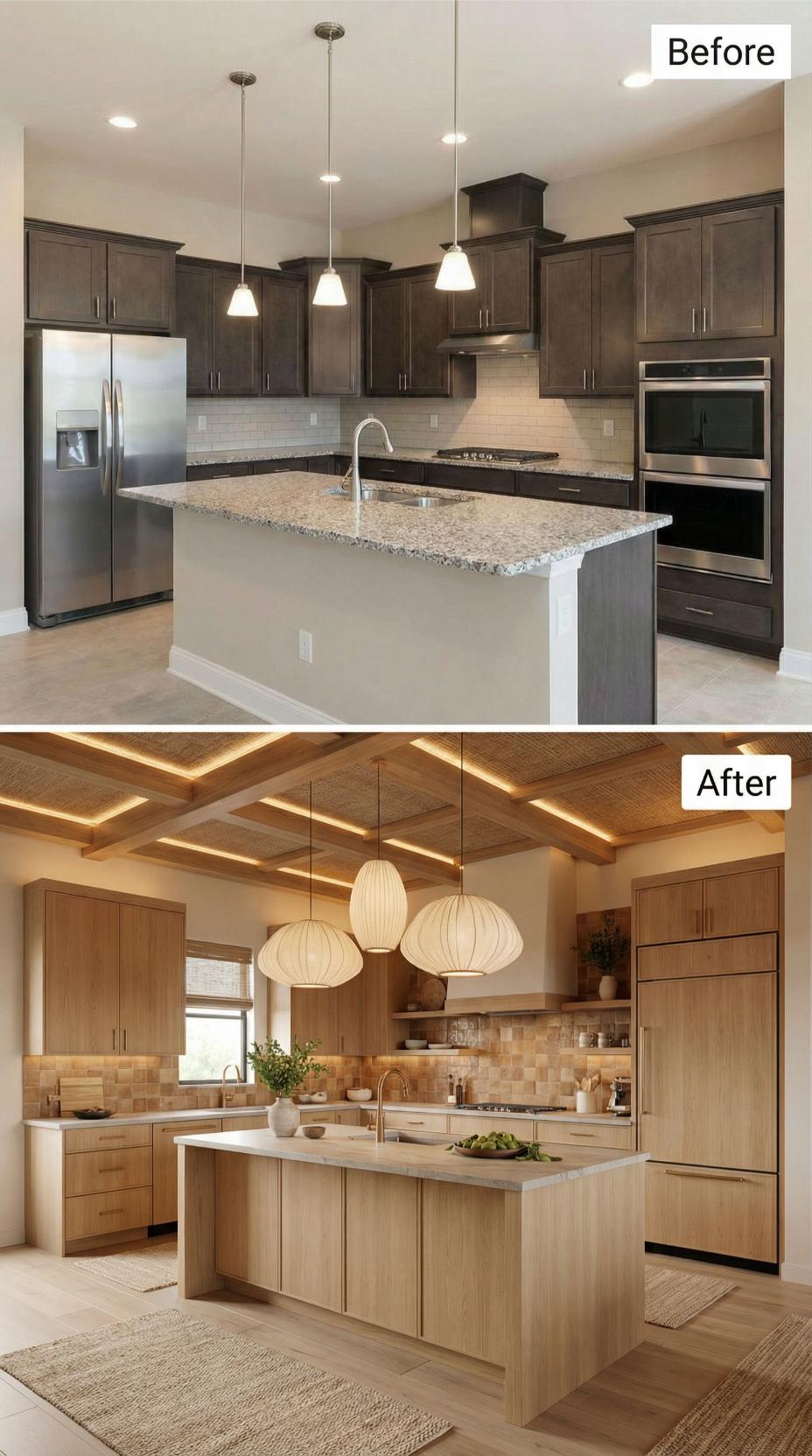 From Builder-Grade Kitchens to Warm Wood Contemporary Sanctuary