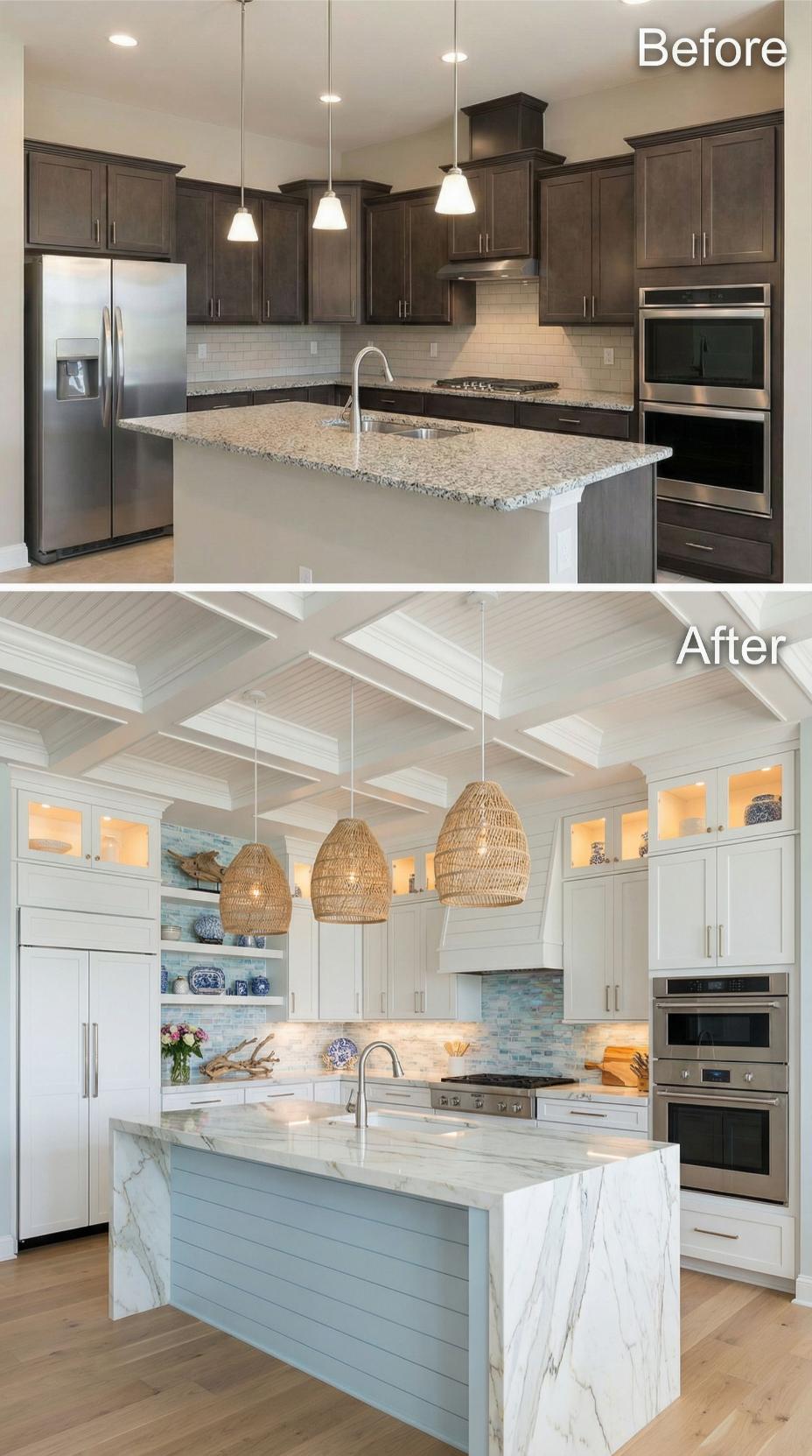 From Builder-Grade Kitchens to Coastal Elegance with Coffered Ceilings