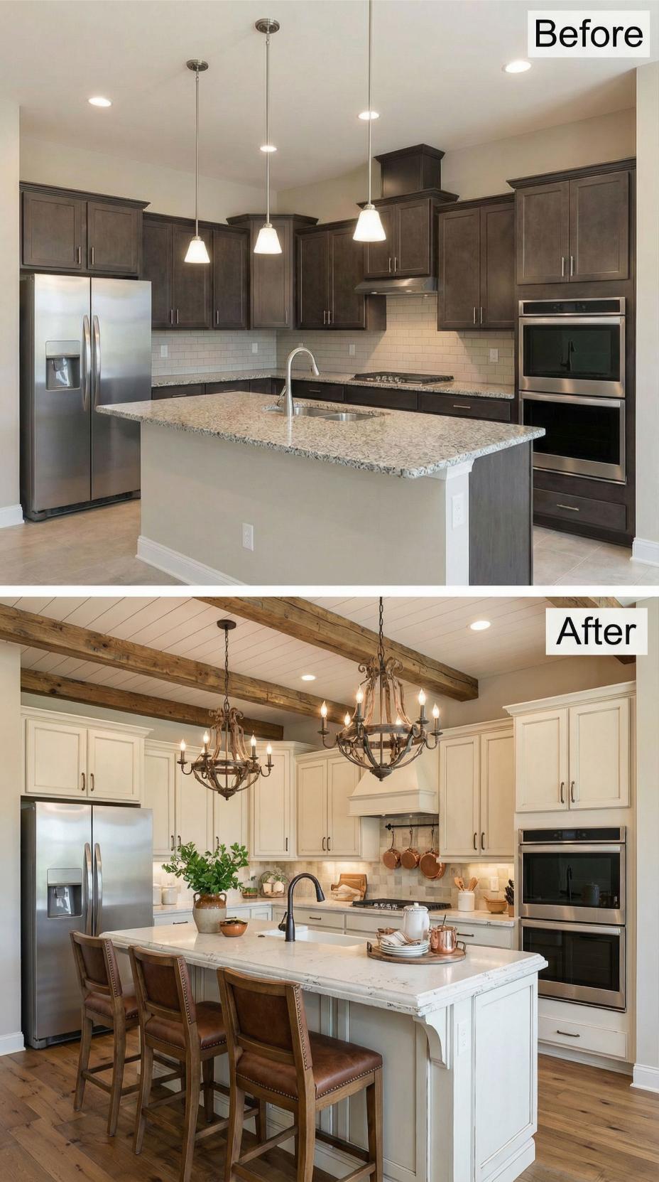 Rustic Elegance Transforms Dark Builder-Grade Kitchens for Happy People