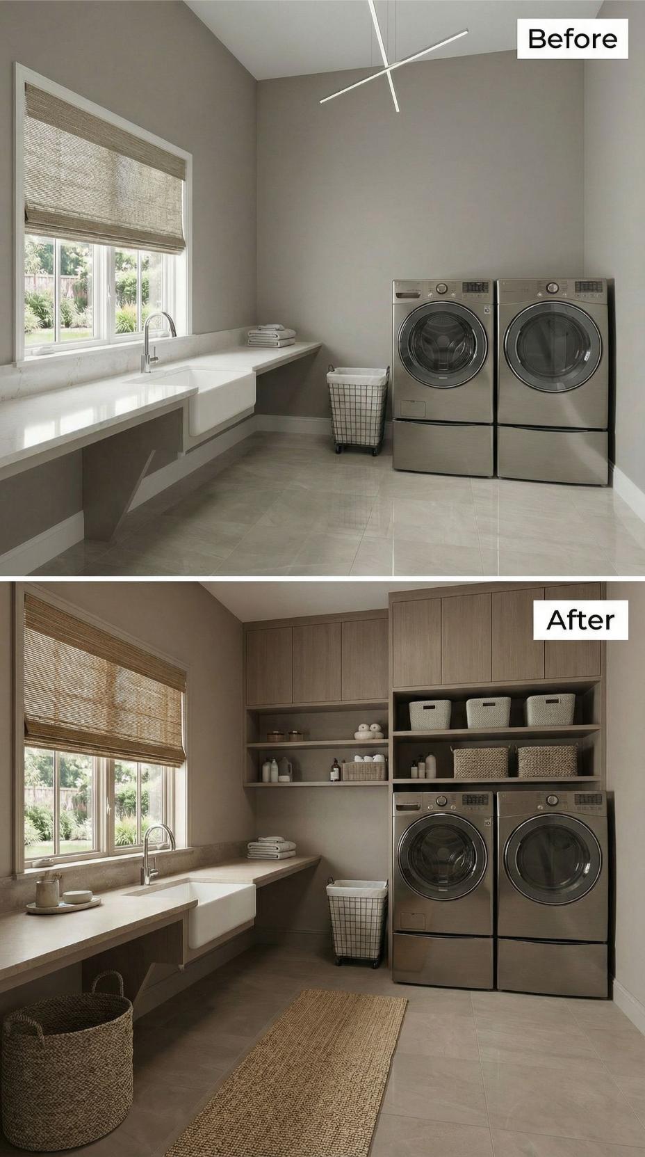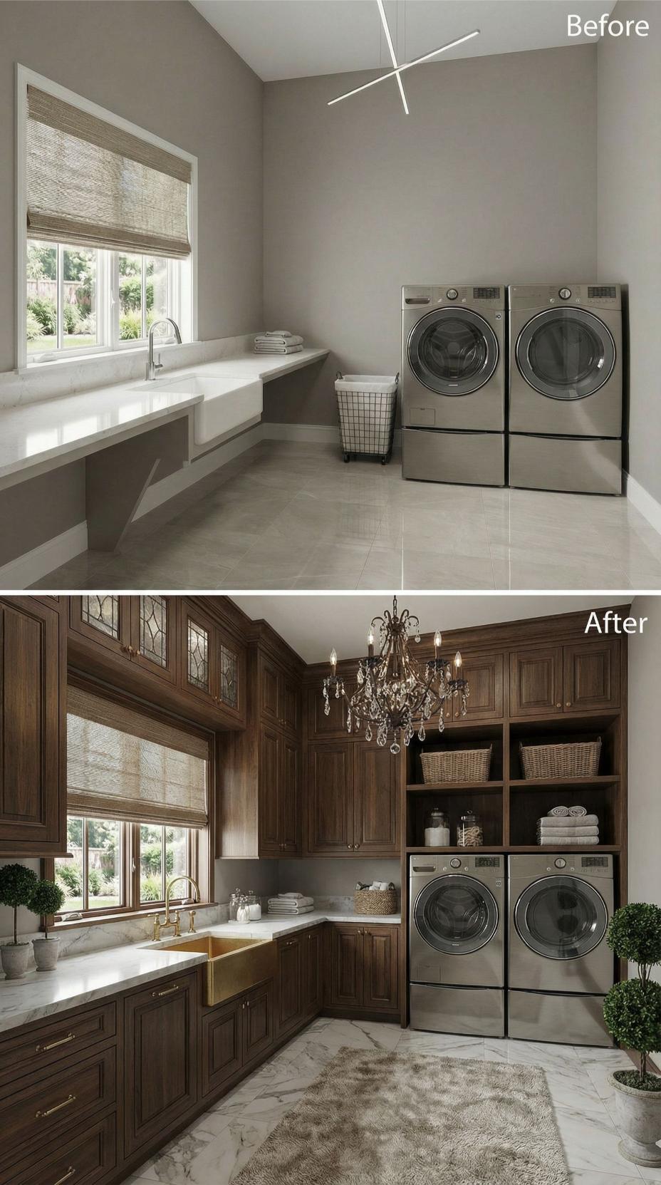 From Builder-Grade Basics to European-Inspired Luxury Laundry Haven