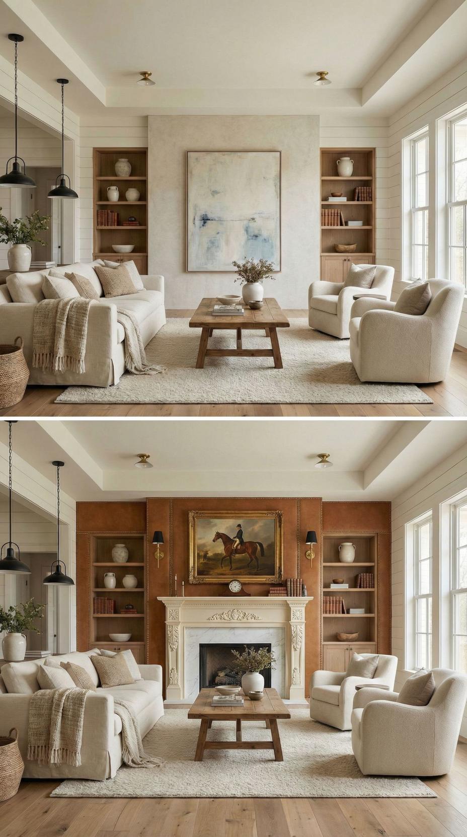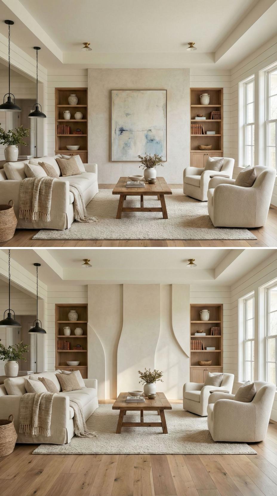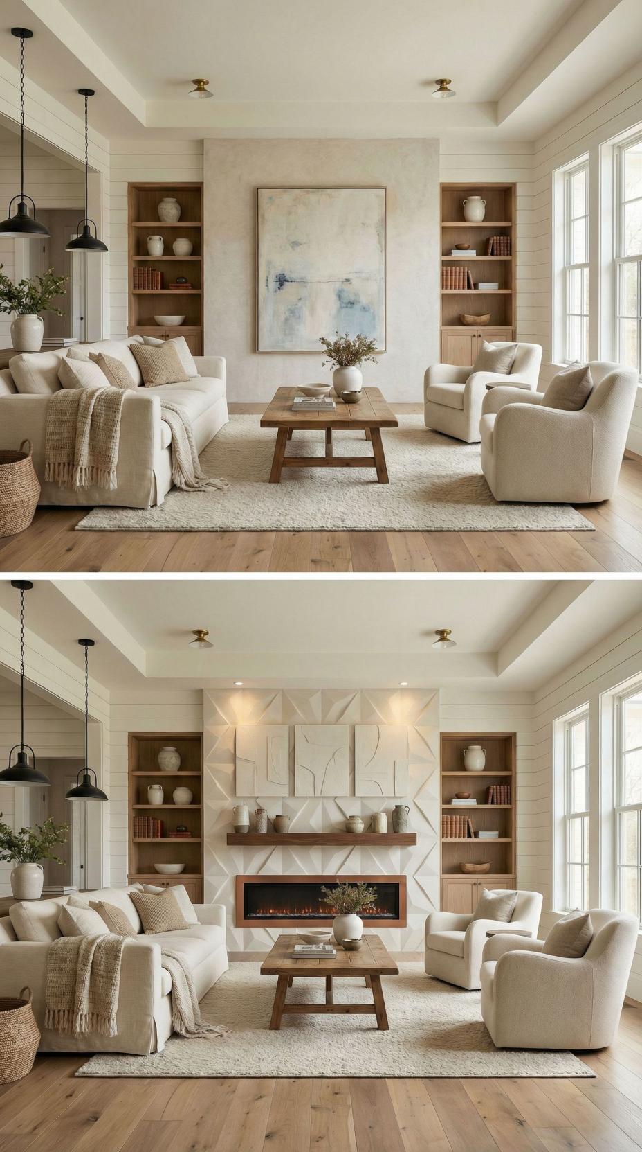 Our interior designer nailed most of our living room—except the accent wall, which somehow ended up feeling flat, forgettable, and expensive for all the wrong reasons. Instead of living with it, I decided to experiment. I uploaded a photo of the room to AI and asked for bold, high-end makeover ideas. What came back was eye-opening: 35 dramatic before-and-after concepts that completely reimagined the wall without changing the rest of the space.