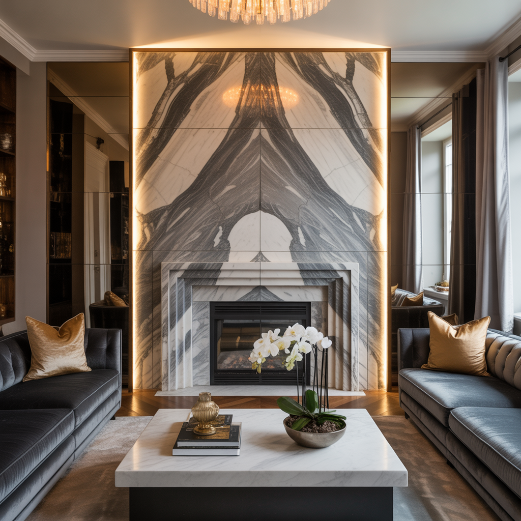 Marble elevates fireplaces into โarchitectural jewelryโโtransforming functional features into luxury statements through material preciousness. The stoneโs inherent veining creates natural artistry that commands attention and conveys sophistication, wealth, and refined taste. In luxurious contexts, marble provides the visual richness and exclusivity that defines high-end interiors, its polished surface reflecting light beautifully while its substantial presence anchors elaborate furnishings.