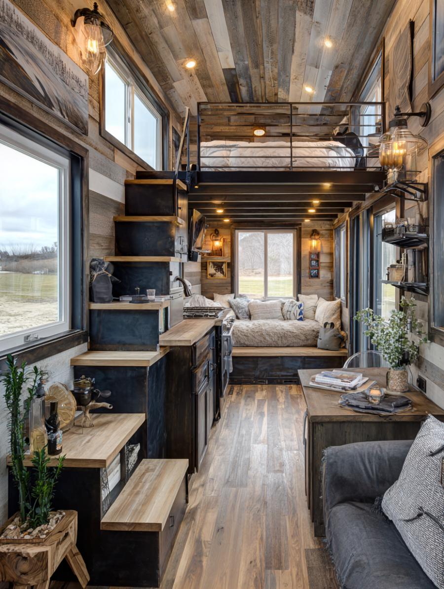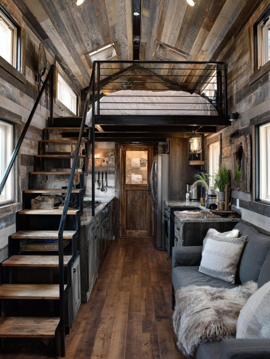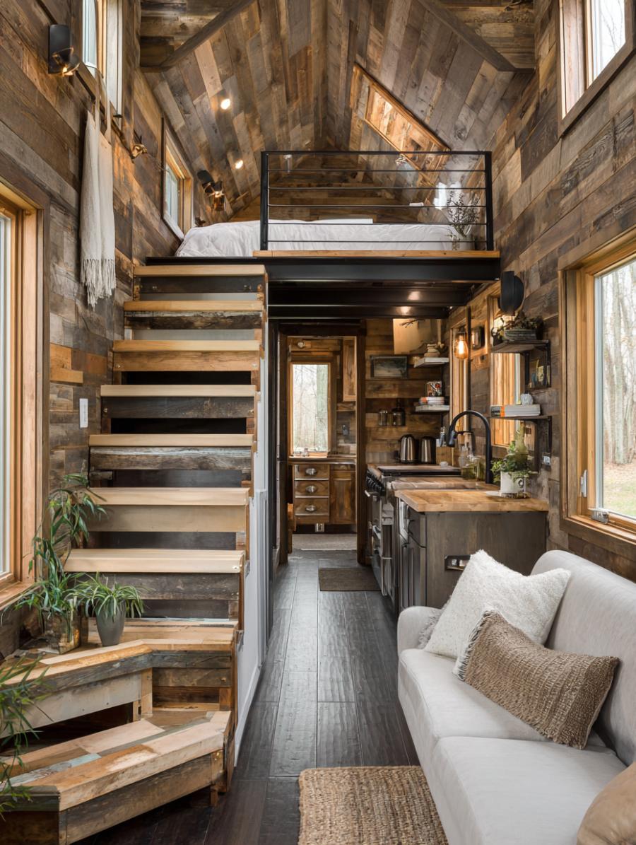 Industrial Loft Meets Reclaimed Wood in Multi-Level Tiny Home Design