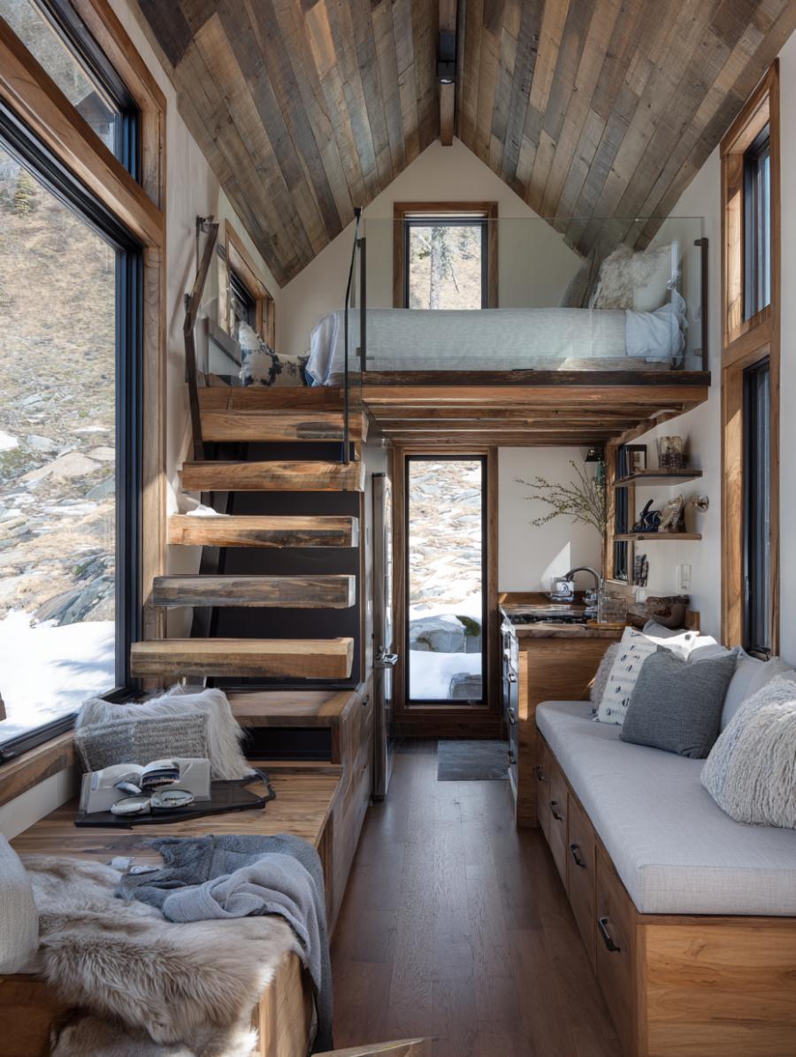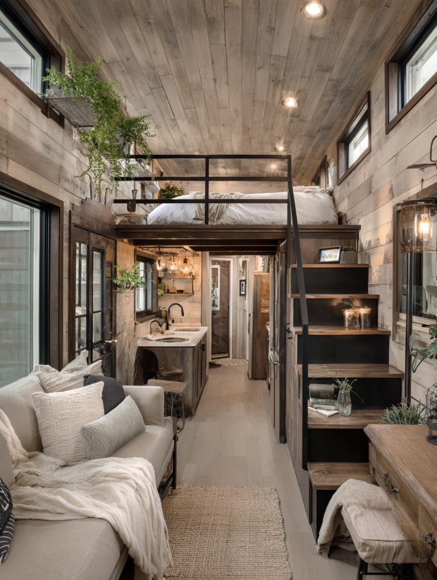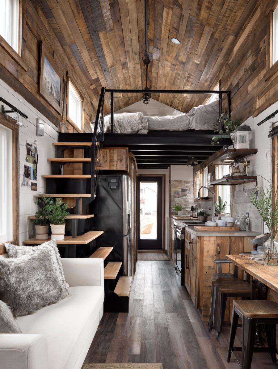 Industrial Loft Meets Reclaimed Wood in Multi-Level Tiny Home Design