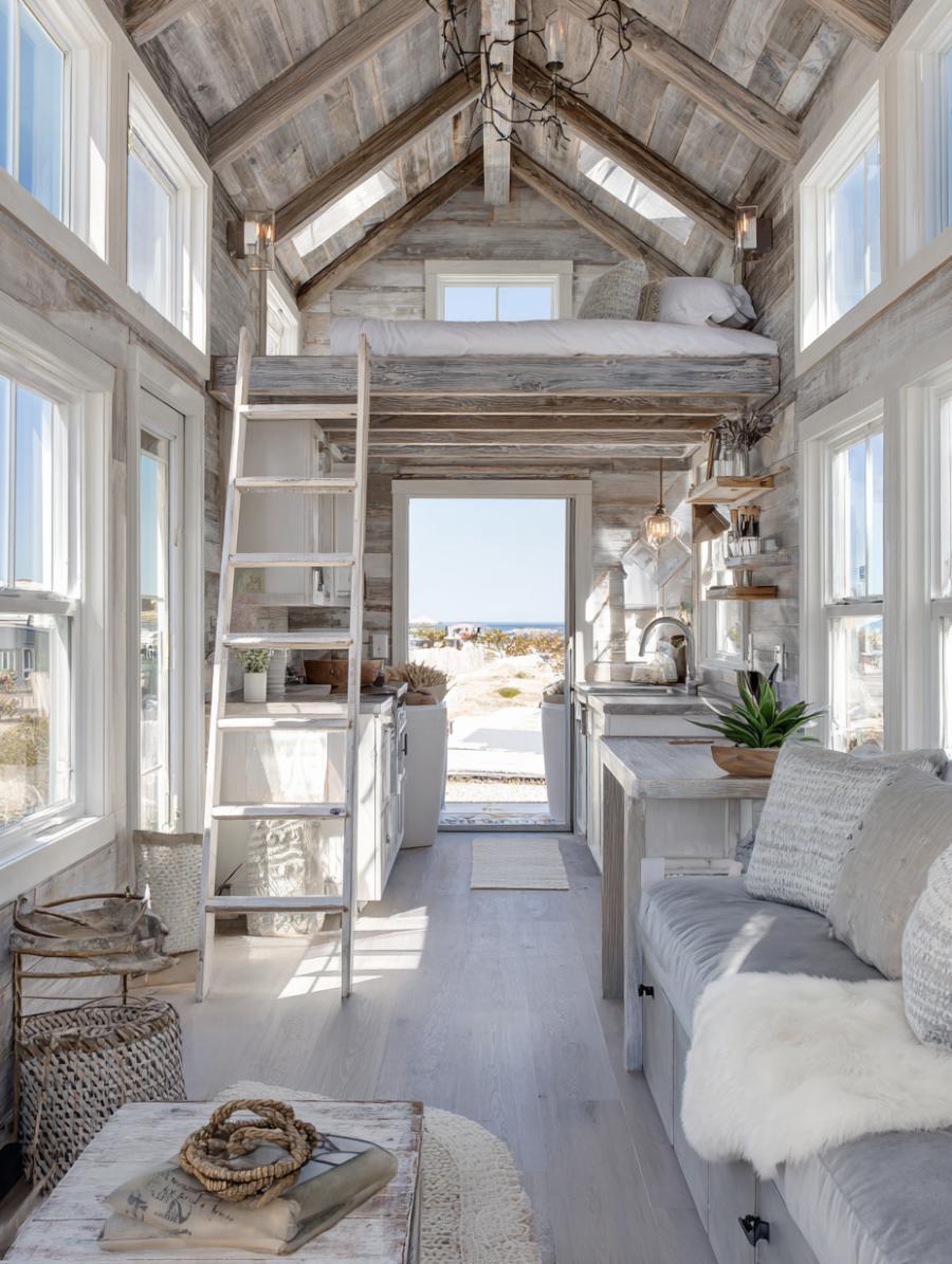 Weathered Wood and White Create Coastal Tiny Home Perfection
