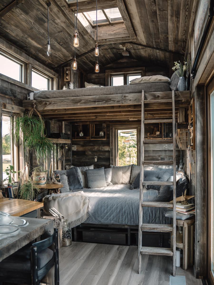 Industrial Loft Meets Cabin Charm in Multi-Level Tiny Living