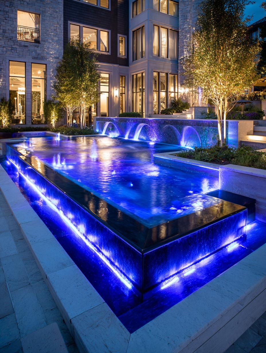 Multi-Level Infinity Pool with LED Lighting and Cascading Water Features