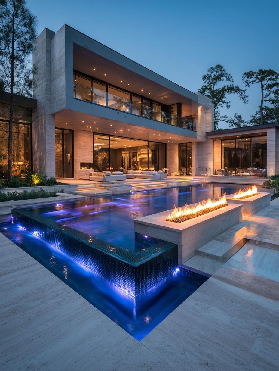 Contemporary Glass House Meets Fire-and-Water Pool Paradise