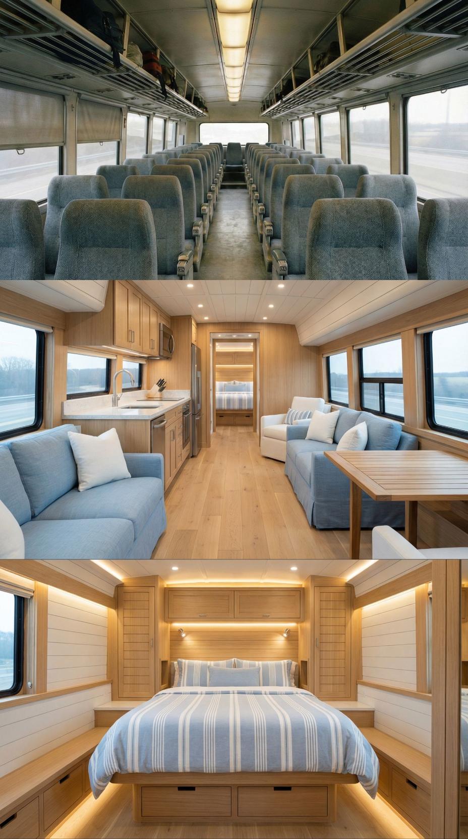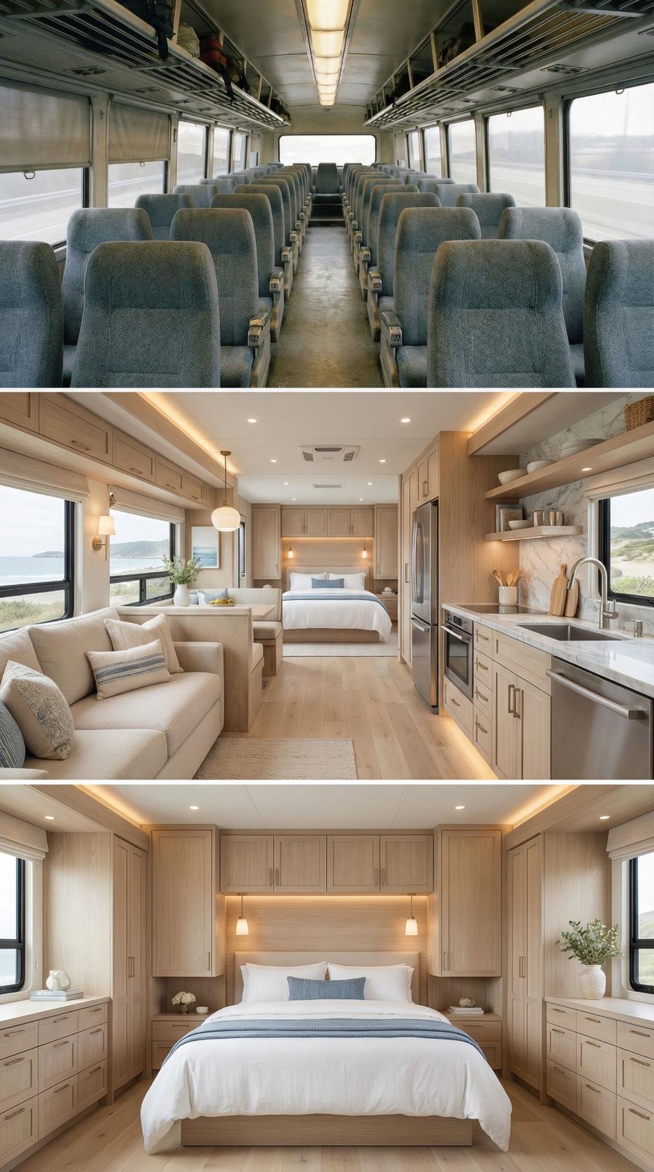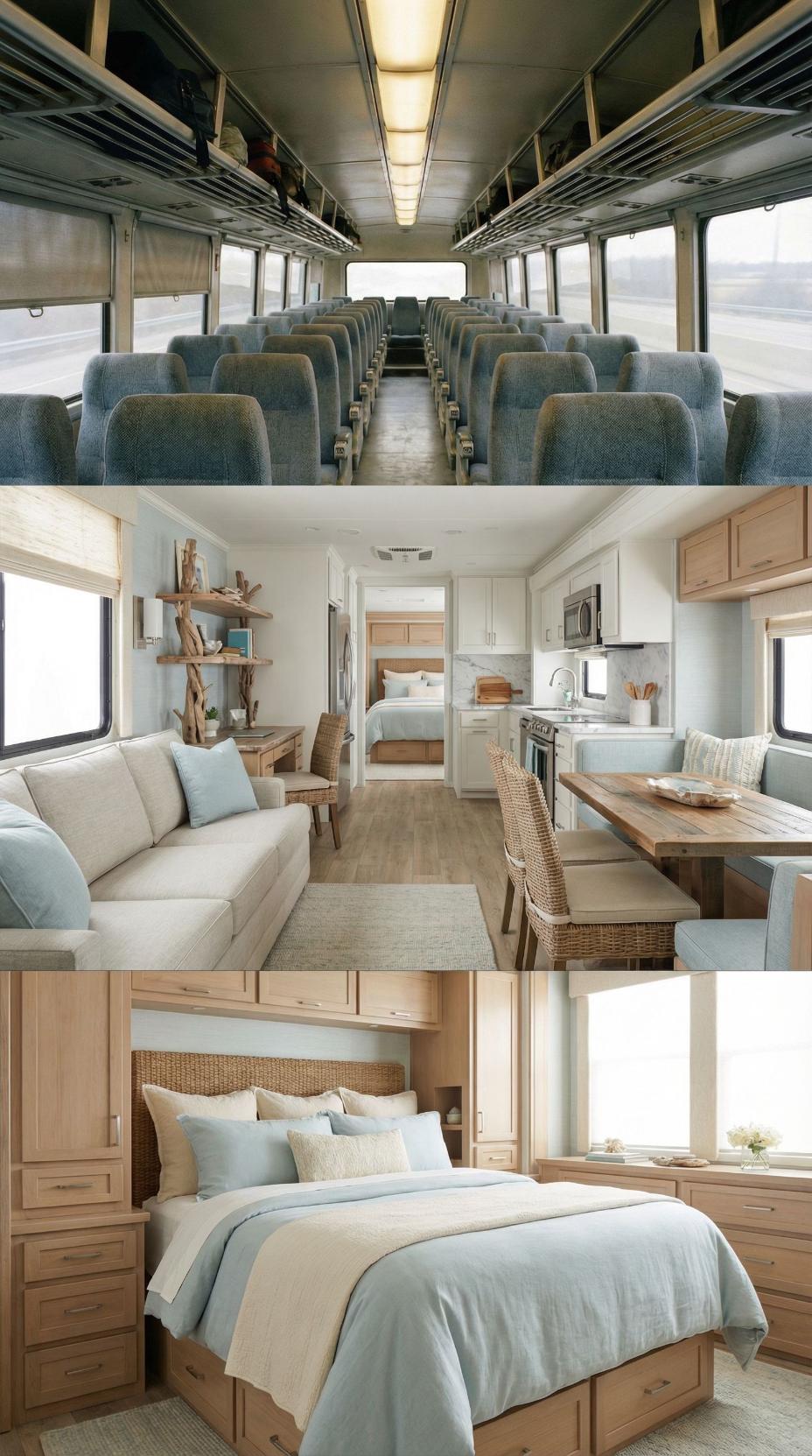 From Worn Bus Seats to Luxurious Coastal-Inspired Living Space