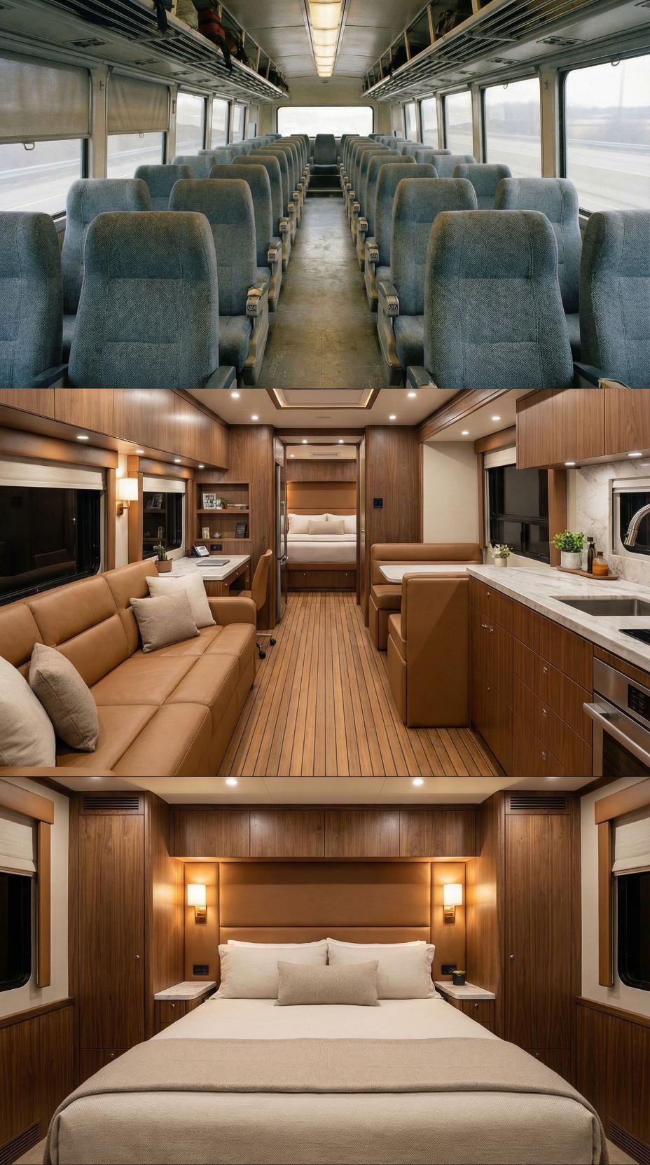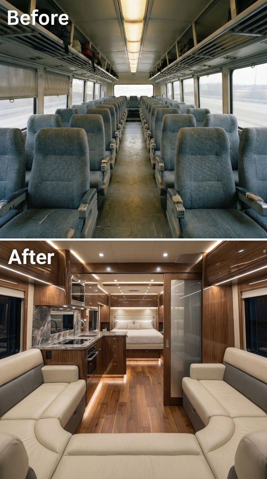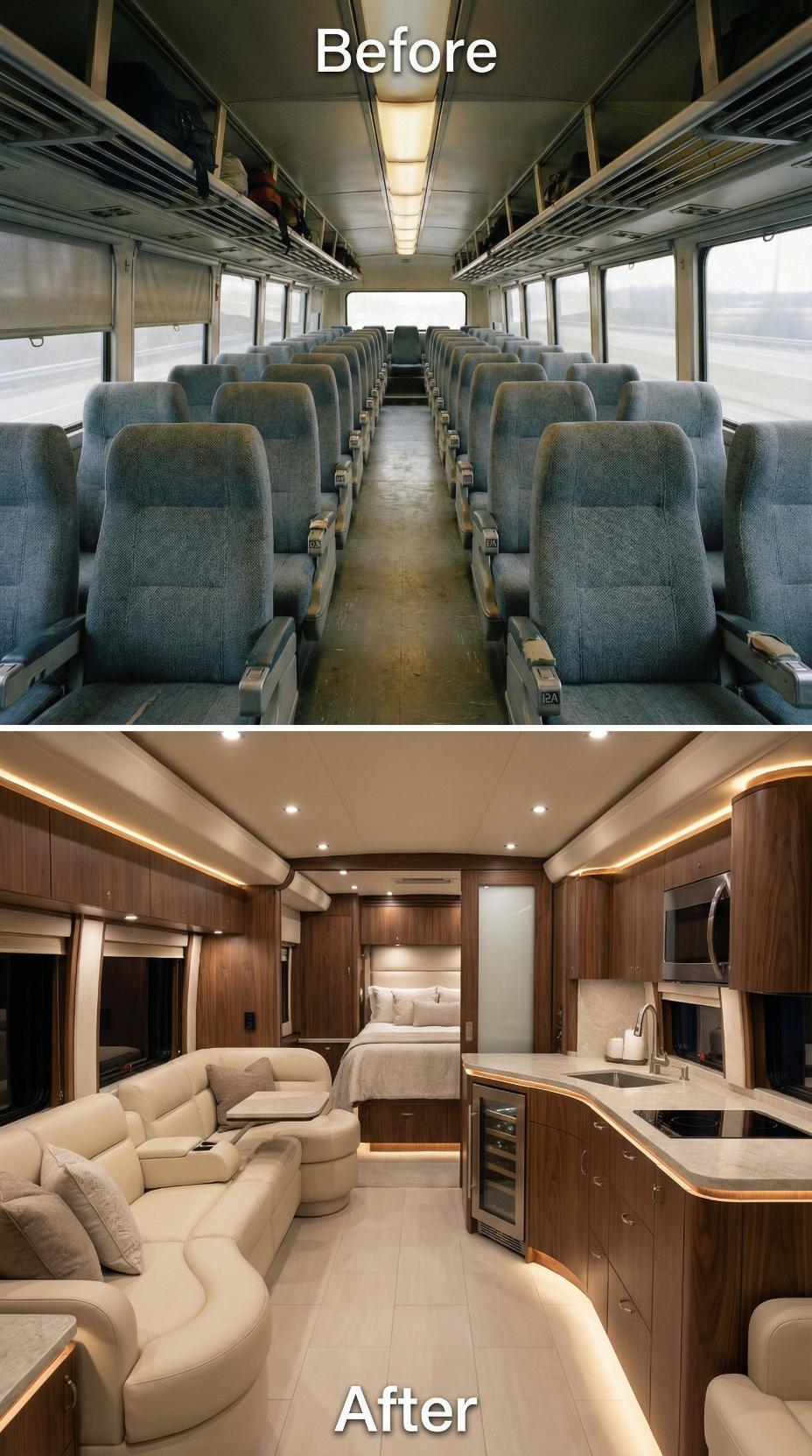 From Worn Transit Seating to Luxury Mobile Suite with Full Kitchen