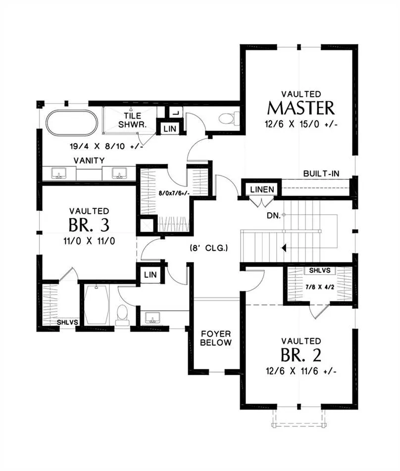 Upstairs are all of the bedrooms, including the master with its amazing built-ins and large spa bath, and walk-in closet! Notice how each bedroom is vaulted and has its own walk-in closet, a convenient and rare feature.