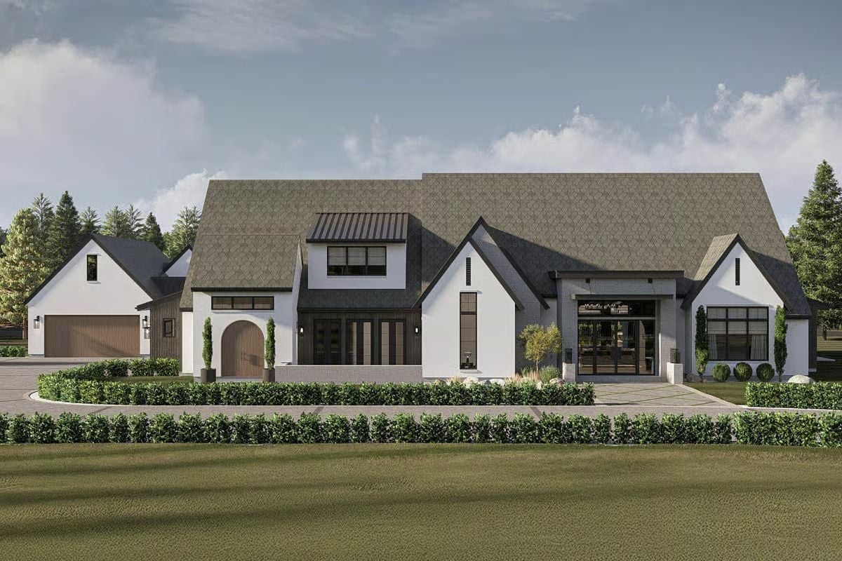 This modern farmhouse design has a wide, low profile with multiple connected sections that give the home a clear and organized layout. The exterior feels substantial but straightforward, with each wing serving a specific purpose and helping the home feel open without being overwhelming.