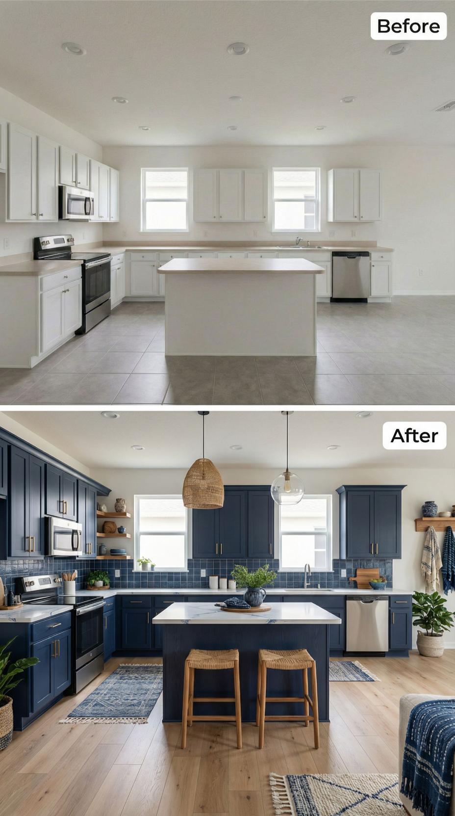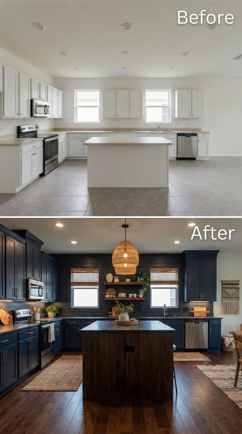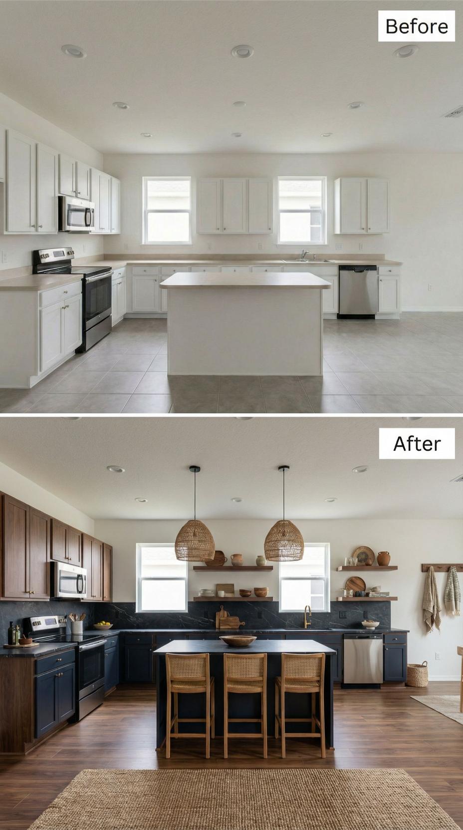 Few transformations are as dramatic as turning a bland builder-grade kitchen into a breathtaking work of art. In this gallery, we explore ultra-luxurious before-and-after kitchen designs that blend navy Japandi elegance, chateau refinement, rustic warmth, and boho texture. Each renovation respects the original layout while elevating every surface, material, and detail, proving how thoughtful design and craftsmanship can completely redefine a space at the highest level of luxury possible today.