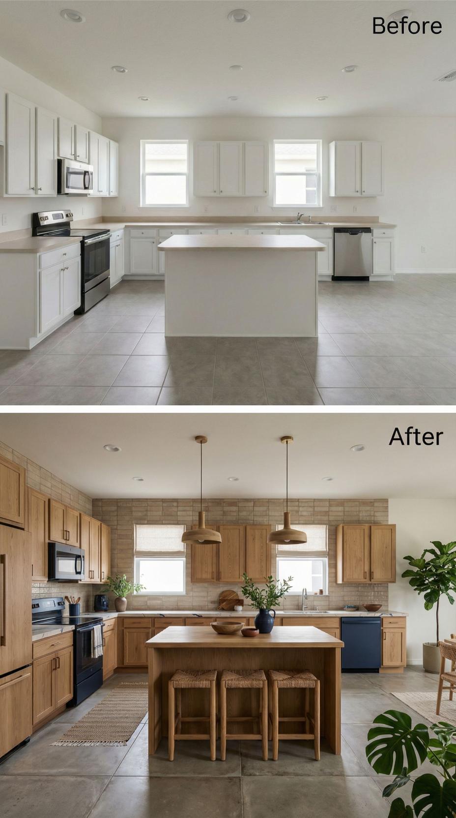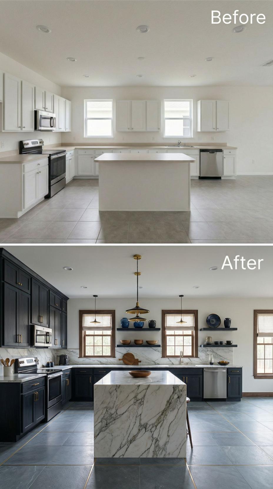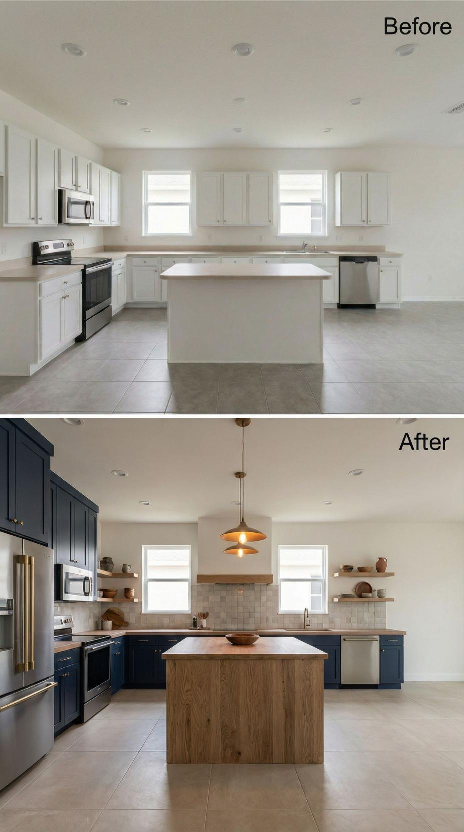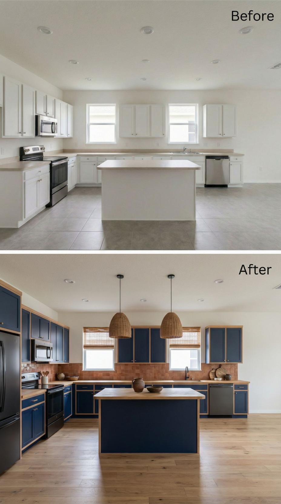 Few transformations are as dramatic as turning a bland builder-grade kitchen into a breathtaking work of art. In this gallery, we explore ultra-luxurious before-and-after kitchen designs that blend navy Japandi elegance, chateau refinement, rustic warmth, and boho texture. Each renovation respects the original layout while elevating every surface, material, and detail, proving how thoughtful design and craftsmanship can completely redefine a space at the highest level of luxury possible today.