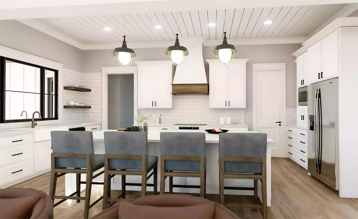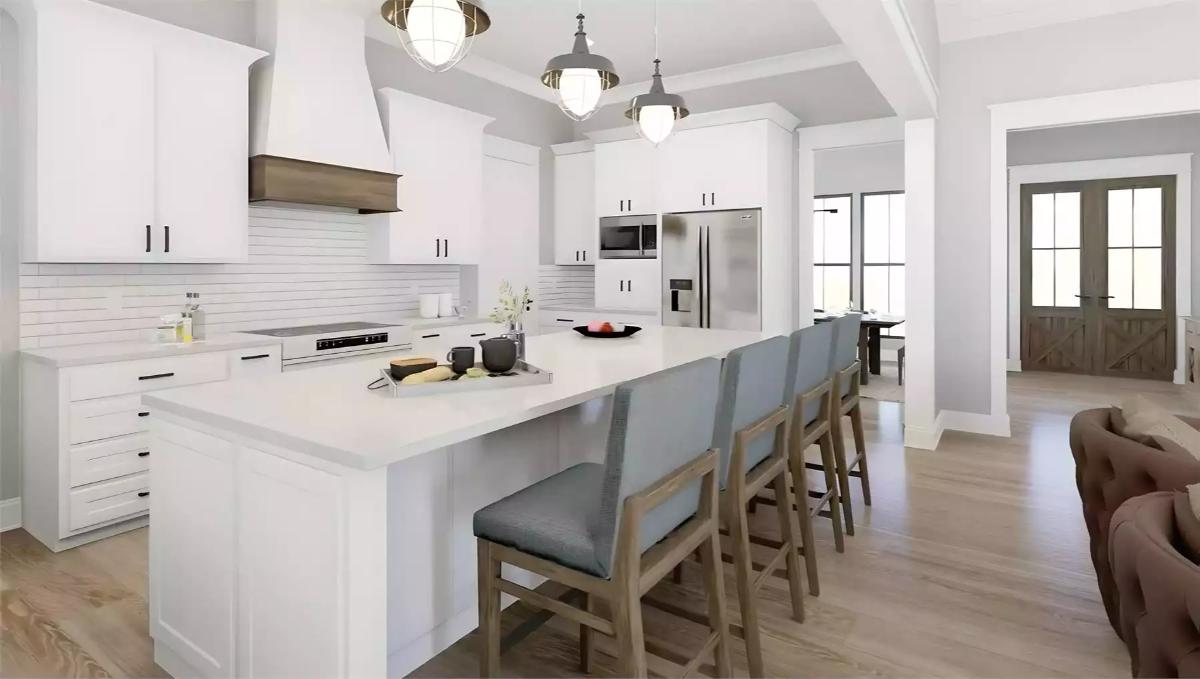 Youโll find the dining room beside the foyer and the vaulted living space open to the island kitchen in back. Head out through the sliding patio doors and the vaulted outdoor living and kitchen on the grilling porch broaden the possibilities for every day and hosting potential!