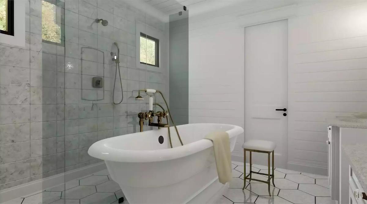 Three secondary bedroomsโtwo in a Jack-and-Jill layout and the other beside a hall bathโsit on one side while the master suite is isolated in its own hallway behind the three-car garage.