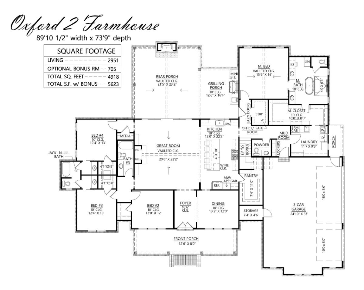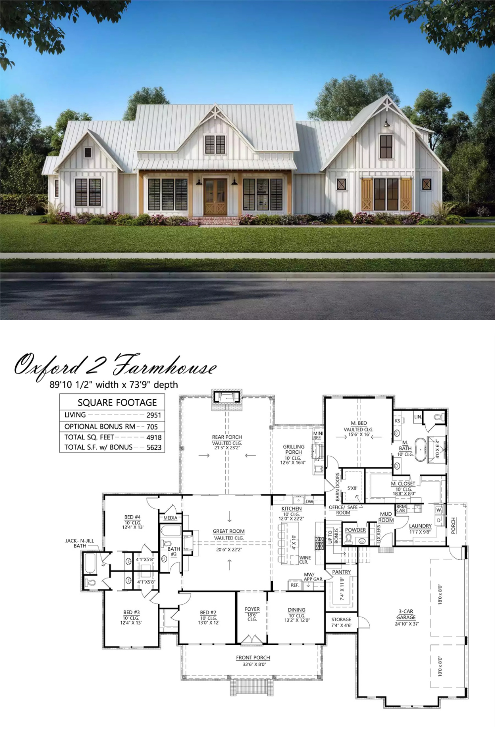 If youโre looking for a spacious farmhouse on one level, House Plan 4284 offers 2,951 square feet and a split-bedroom layout that helps create a roomy feel.