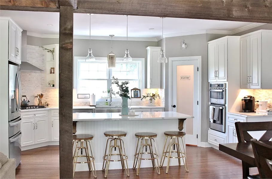 Main house features large kitchen with direct access to immense multi-use space for laundry, pantry, and mudroom.