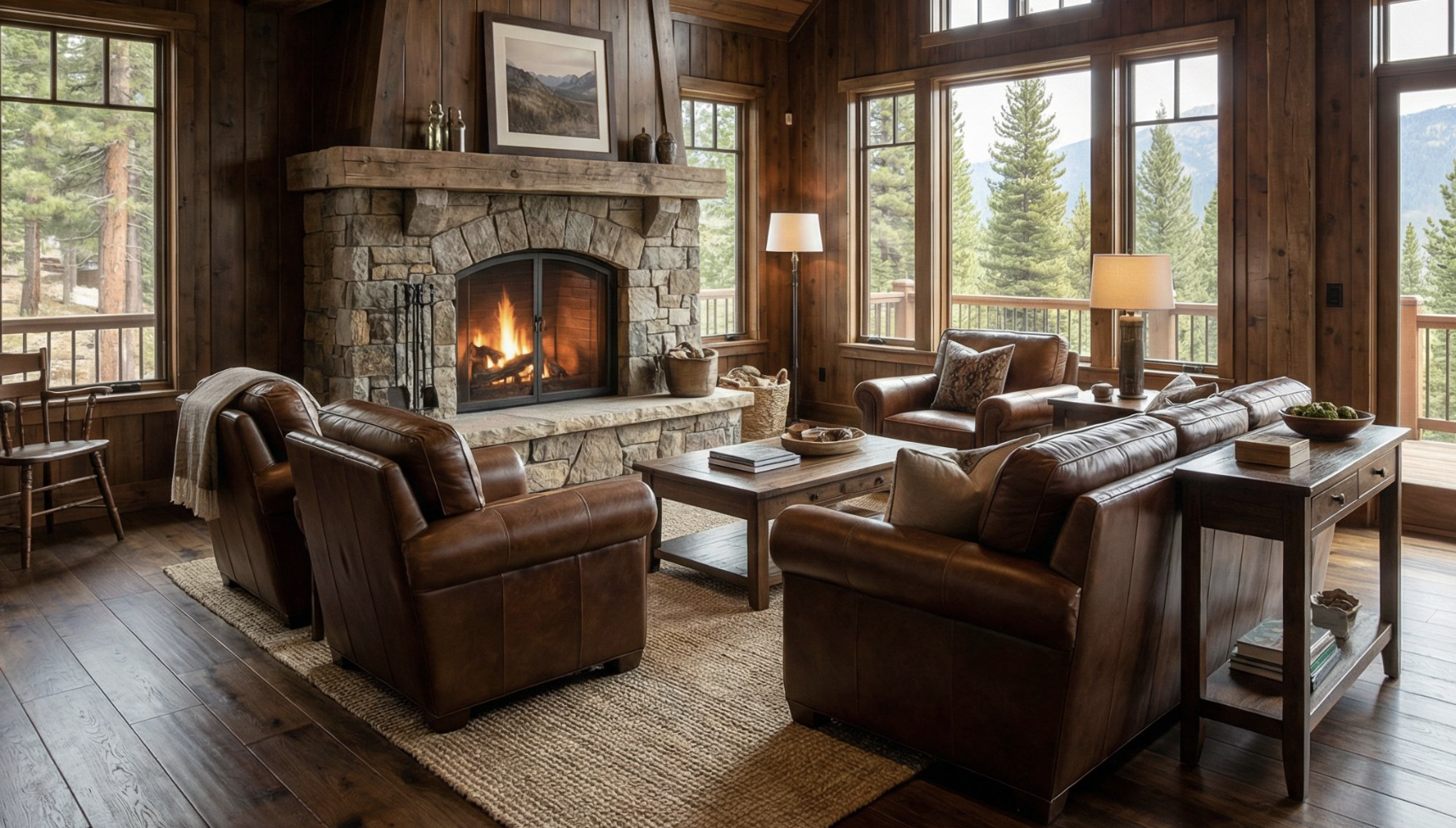 Oversized hand-hewn timbers and full-log beams create dramatic mountain lodge environments celebrating regional building traditions and natural materials. These spaces achieve “alpine grandeur,” where scale itself impresses and structural elements become primary design features. Psychologically, such robust construction suggests safety, permanence, and protection—particularly appealing in mountain settings where architecture mediates between inhabitants and powerful natural forces.