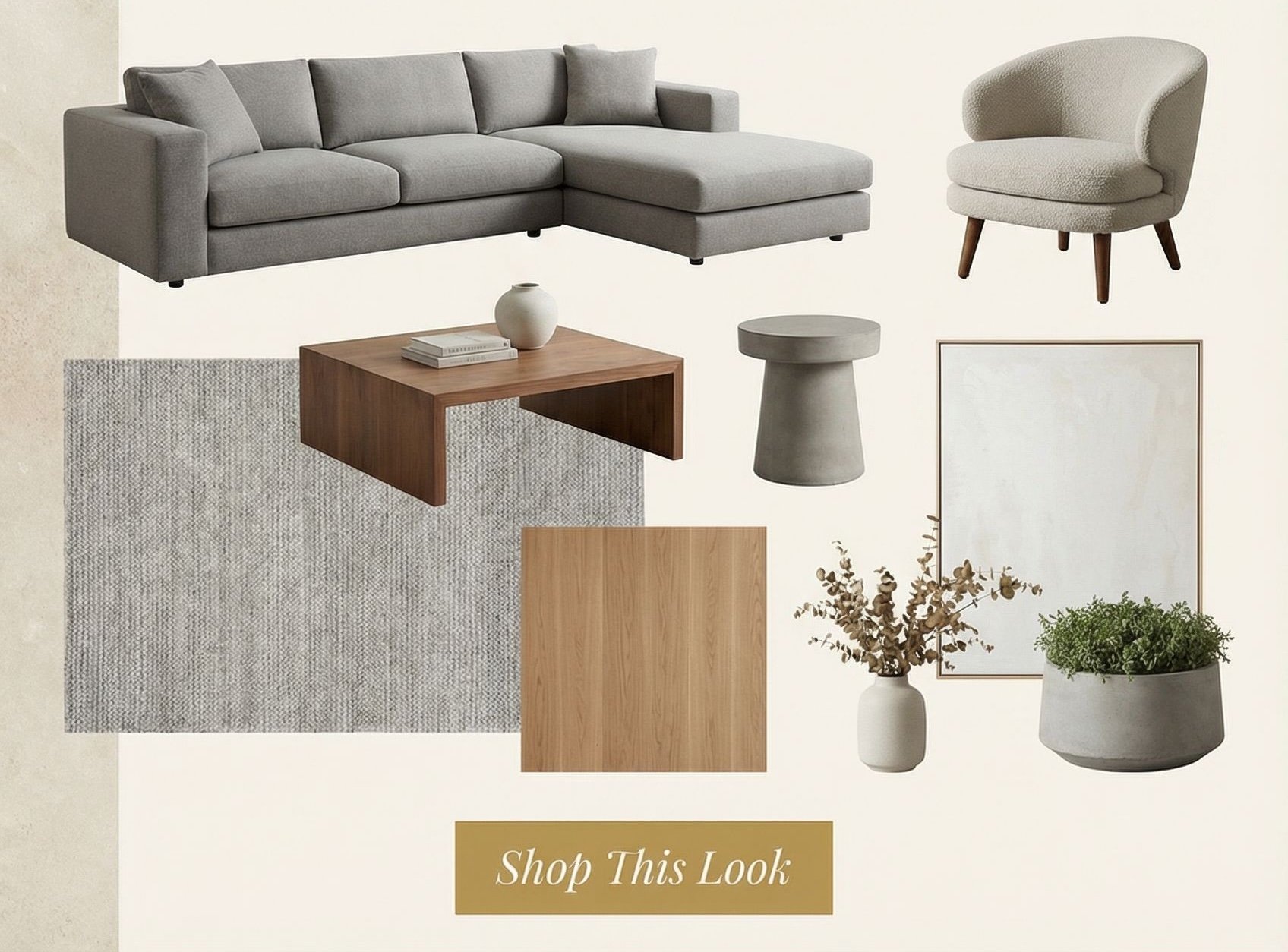 Quiet Luxury Living Room with Whitewashed Wood Panels