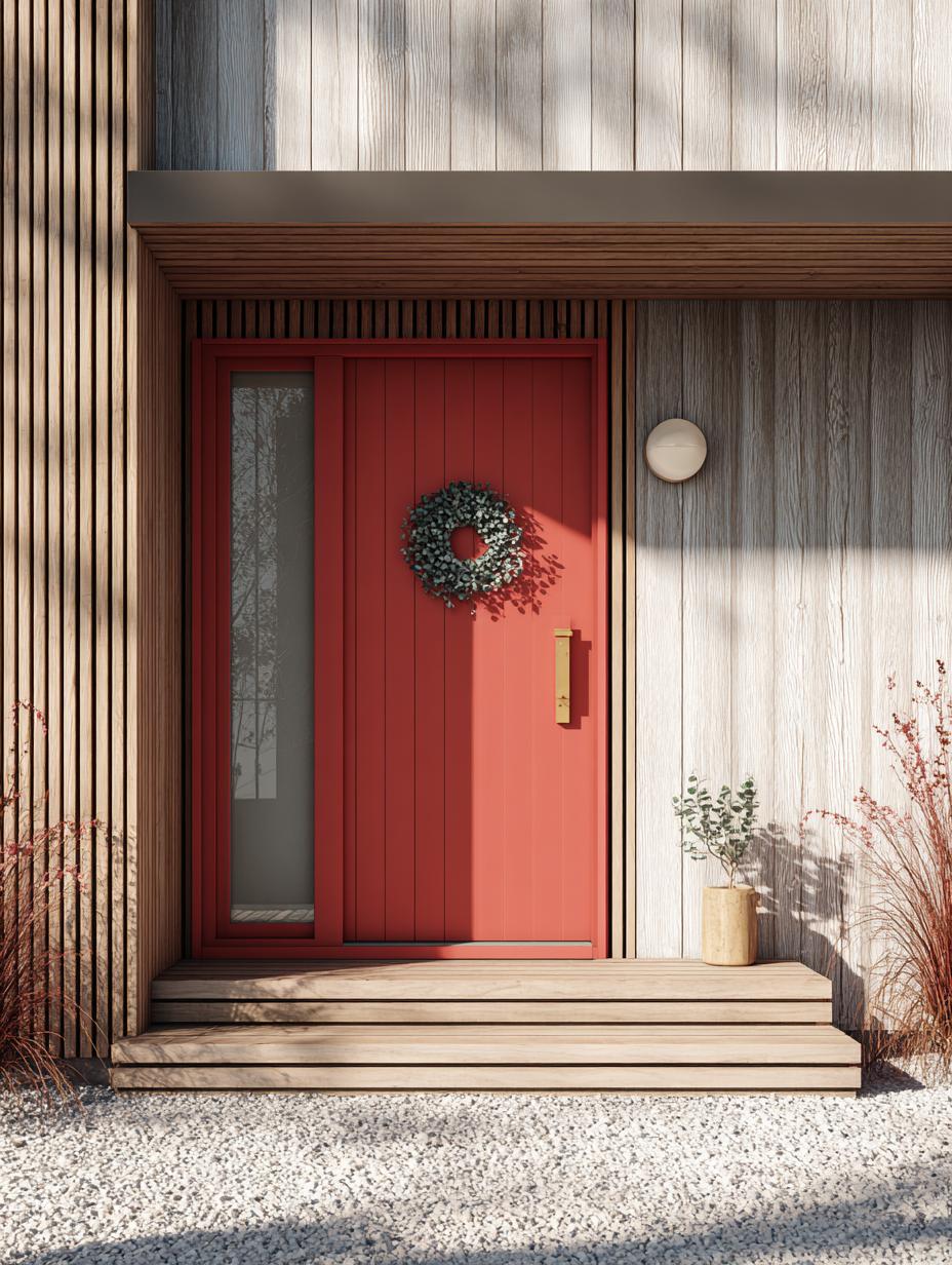 Bold Red Vertical Plank Door Makes Contemporary Entrance Statement