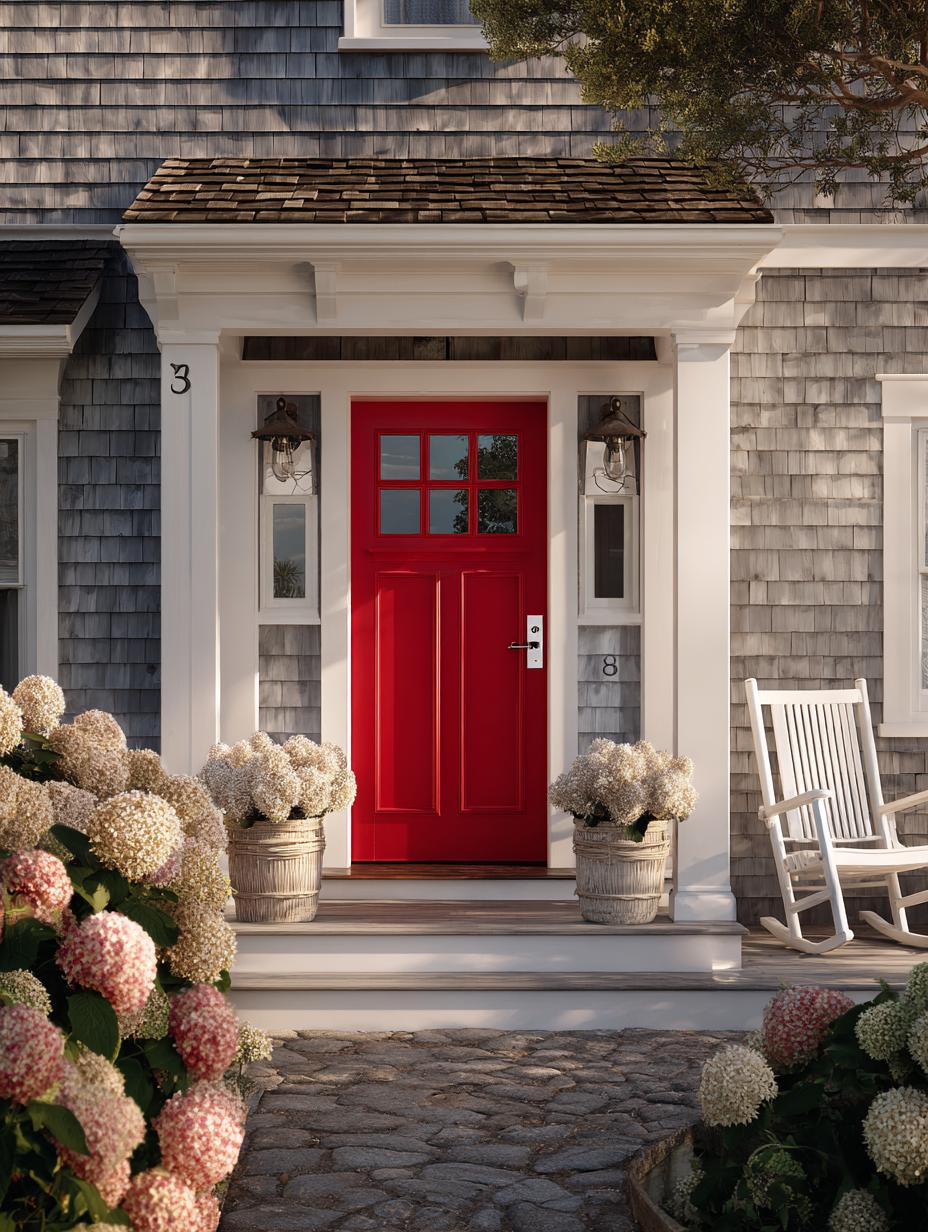 Classic Red Craftsman Door with Coastal Shingle Siding