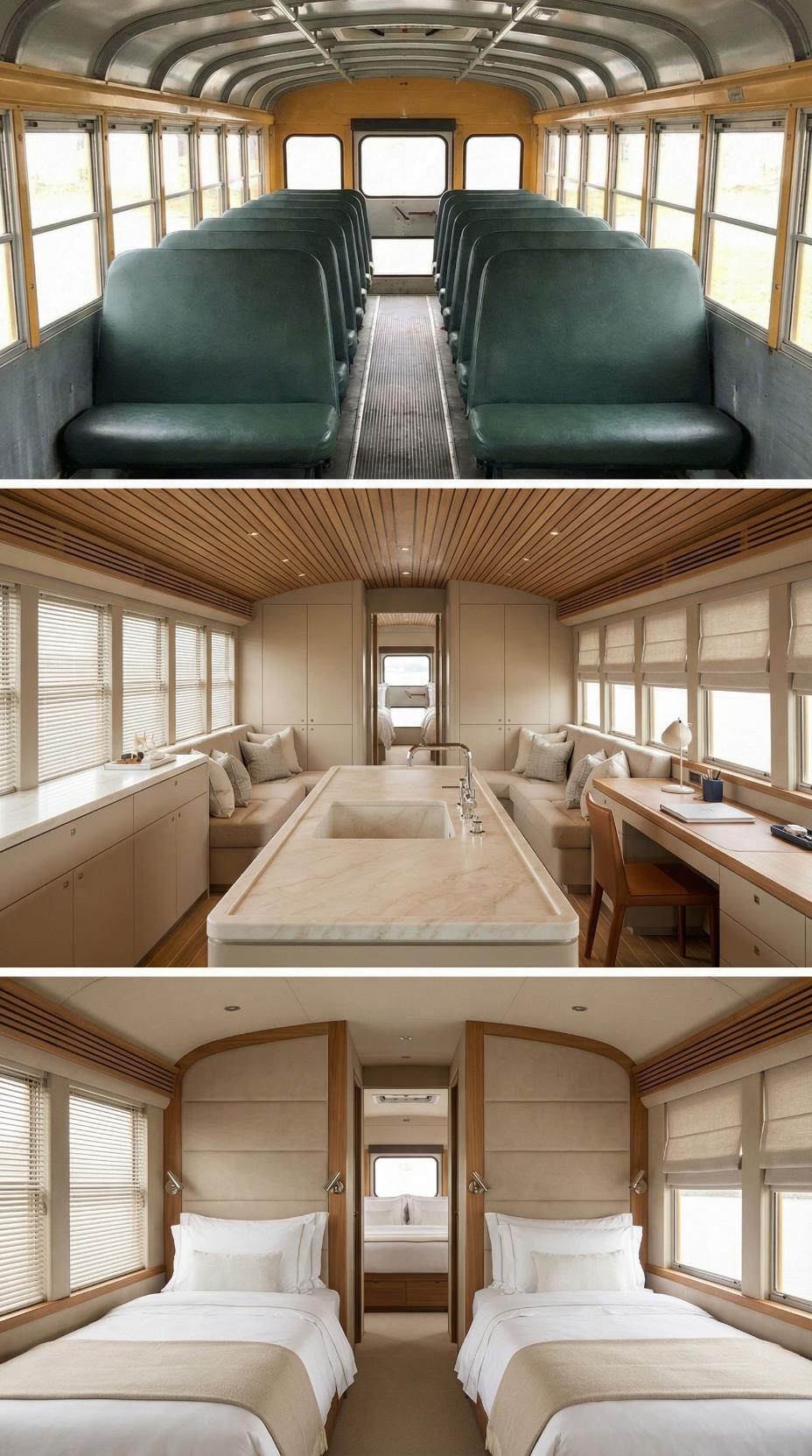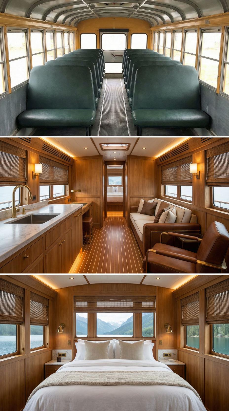 From Dated School Bus to Luxury Yacht-Style Mobile Suite