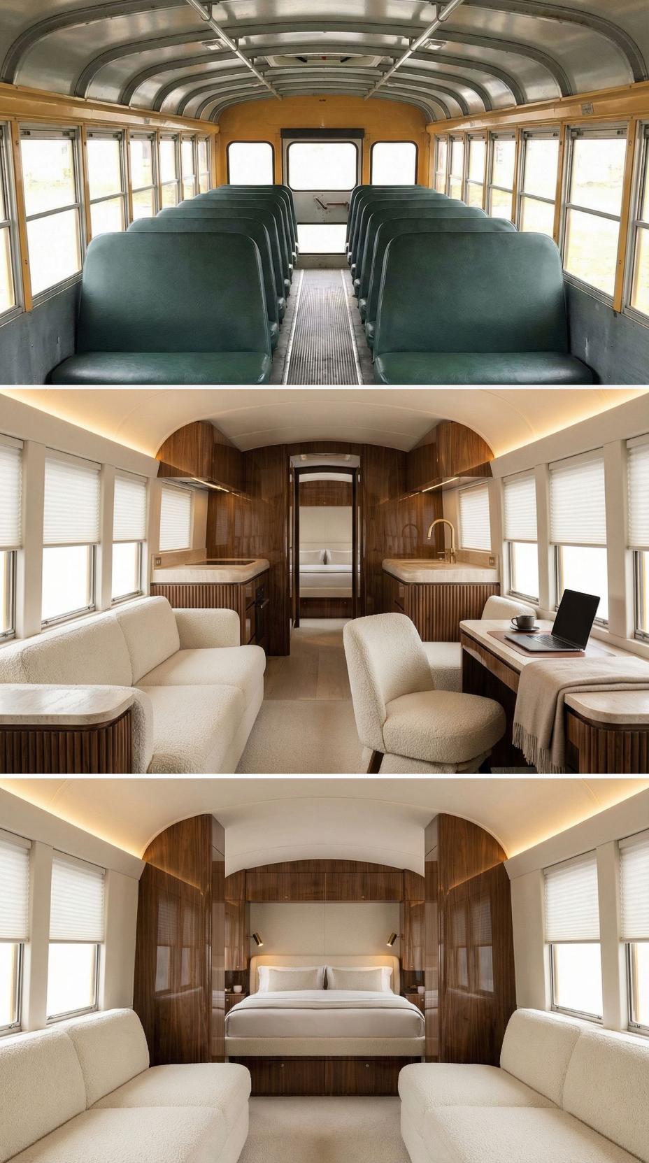 From Dated School Bus to Luxury Mobile Hotel Suite