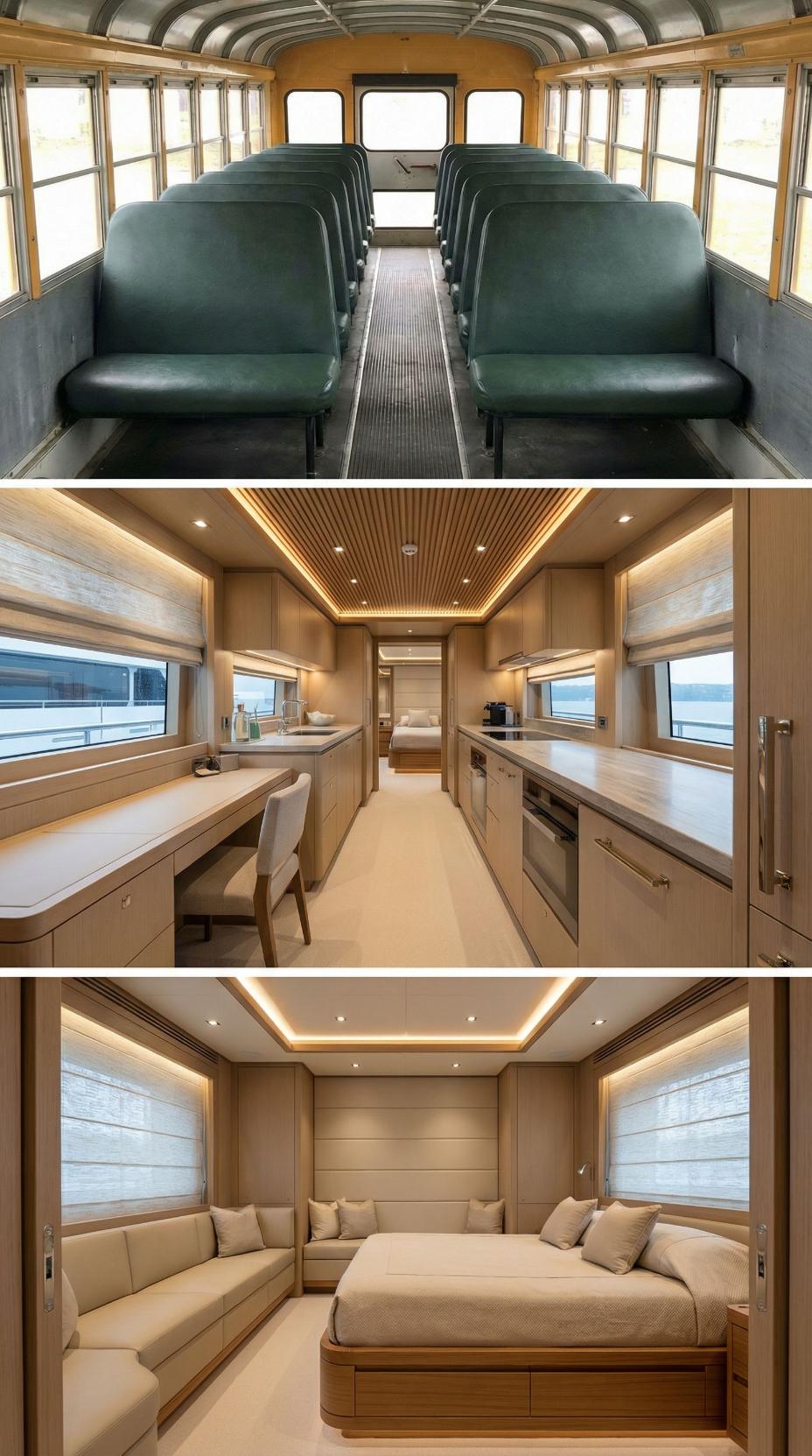 From Dated School Bus to Luxury Yacht-Style Mobile Home