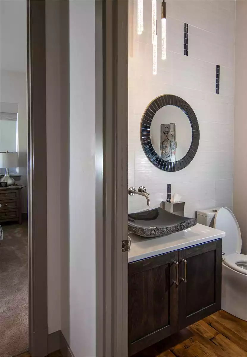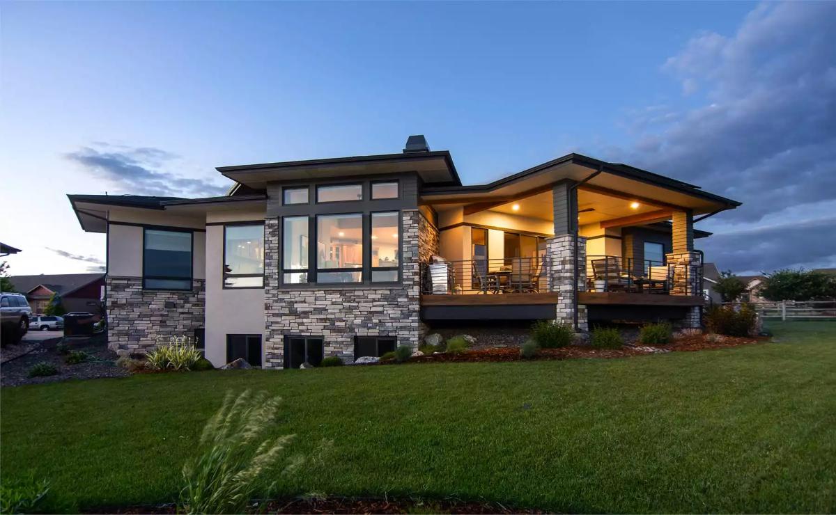 The primary suite sits on the main floor with a double vanity sink, walk-in closet, and split bedroom layout that enhances privacy. The covered porches, courtyard, and deck extend everyday living outdoors, while the home office, library room, and recreation room add flexible spaces for work or relaxation.