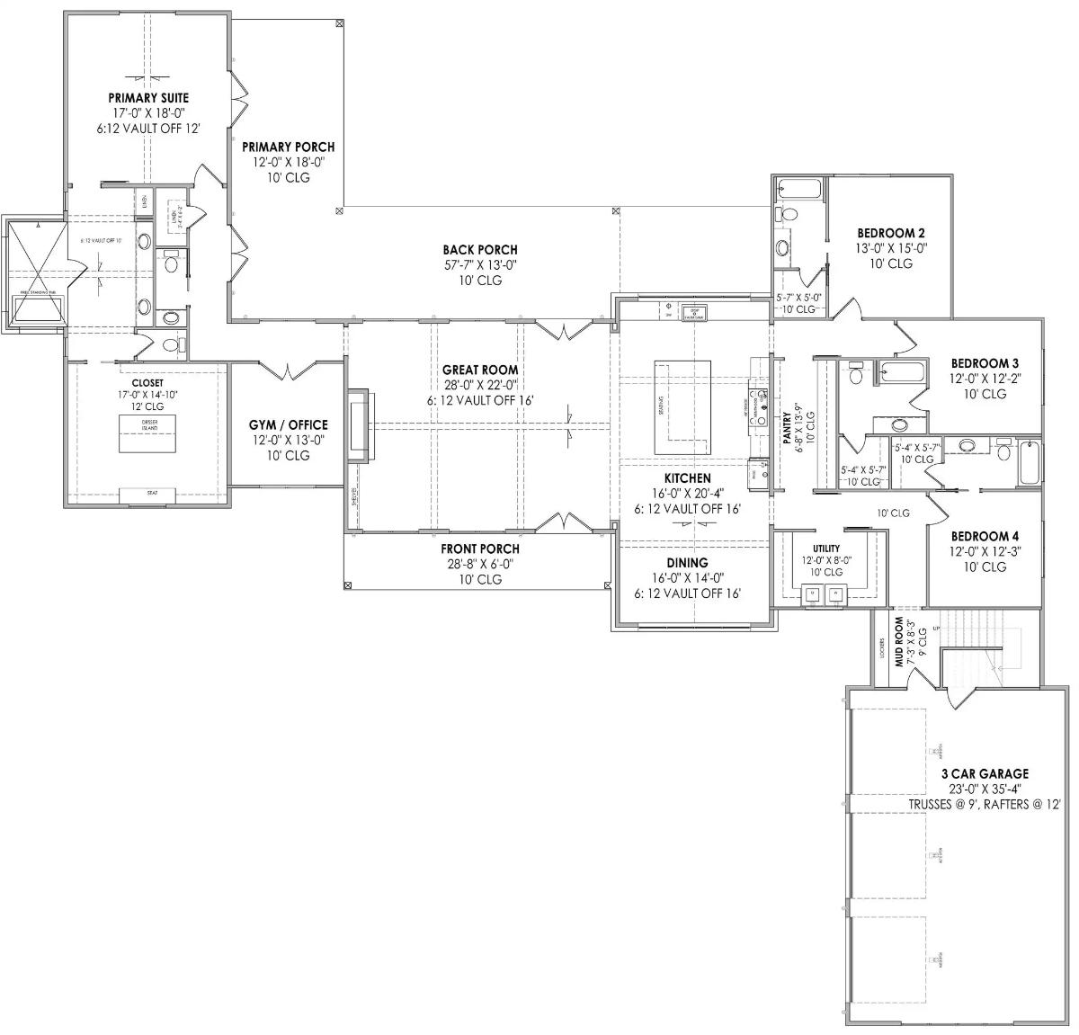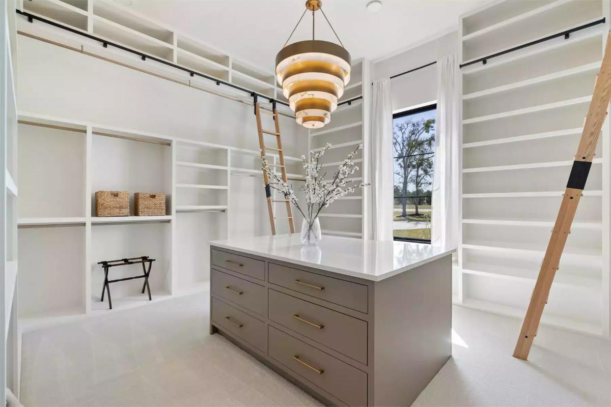 Three additional bedroom suites are positioned on the opposite side of the home for added privacy, including one with direct access near the mudroom, laundry, pantry, and kitchen for everyday convenience.