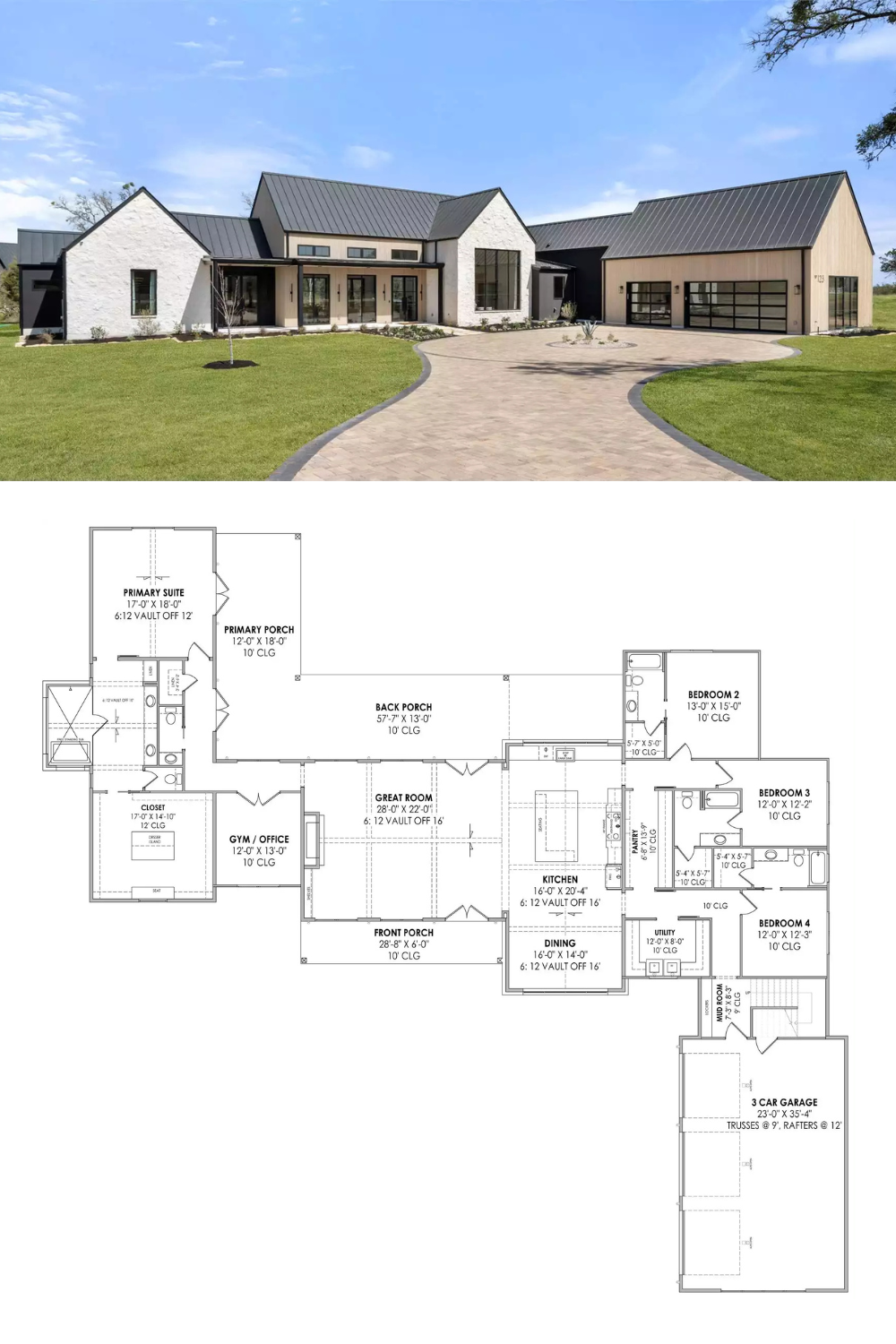 Silvyn Hills is a striking modern farmhouse with subtle Scandinavian influence, offering 3,854 square feet of thoughtfully designed living space on one primary level with a versatile bonus room over the garage.