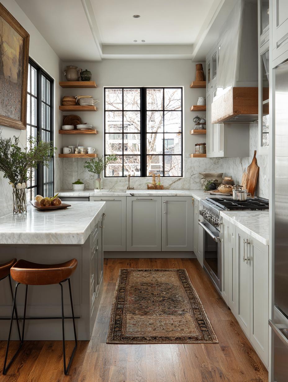 Light-Filled Galley With Floating Shelves That Make Storage Look Effortless
