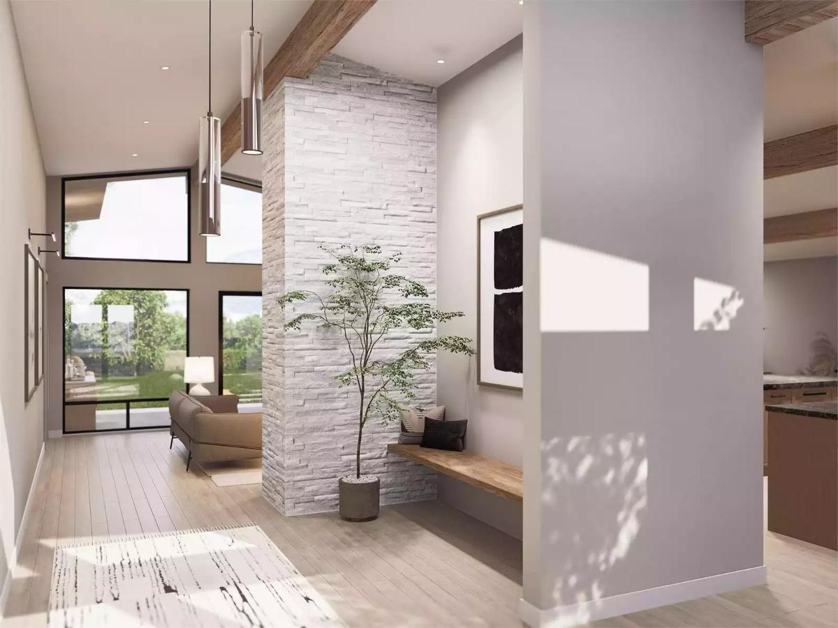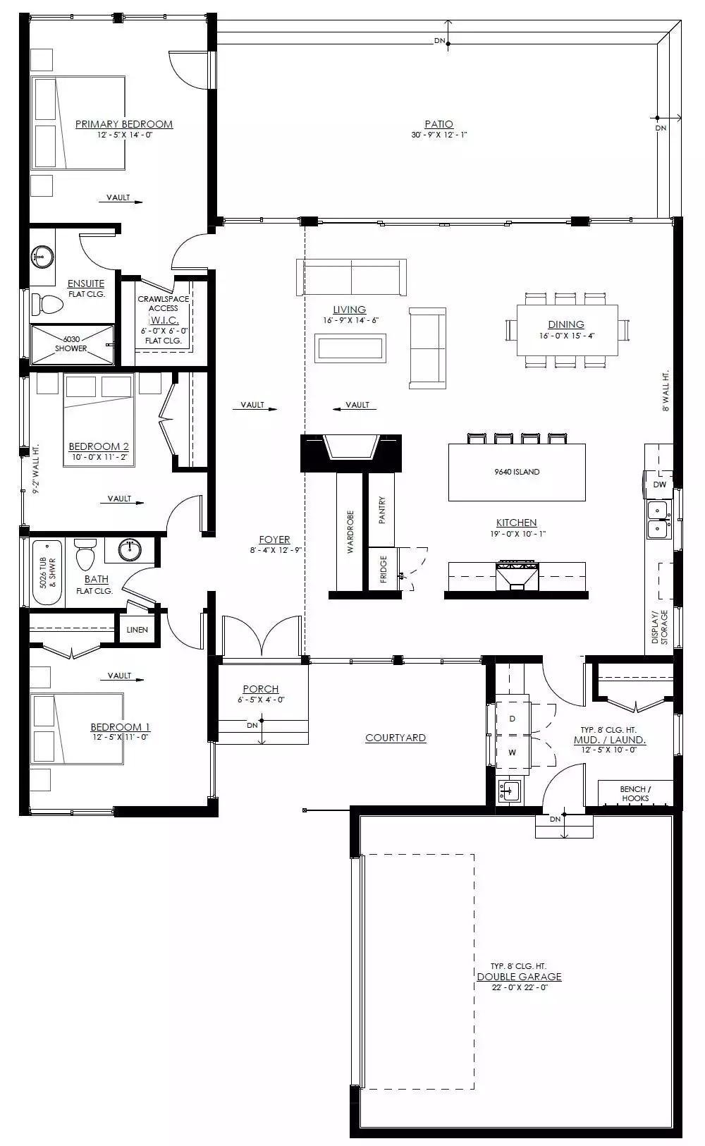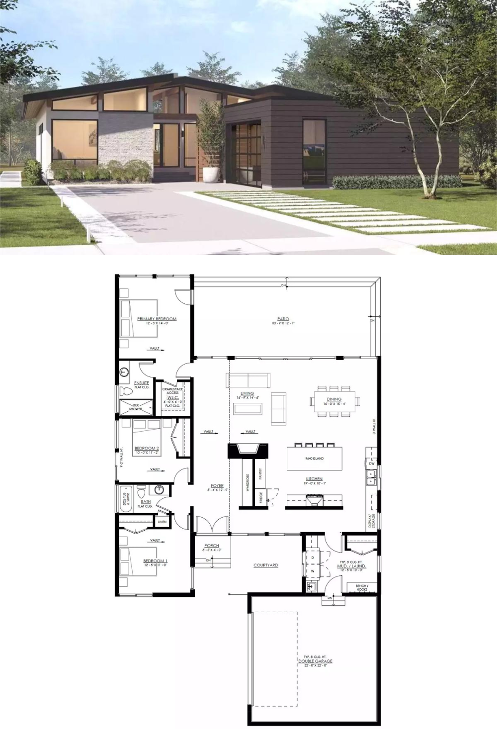 Step into the elegance of Sooke, a mid-century modern house plan designed with an inviting entry courtyard, featuring 3 bedrooms, 2 bathrooms, and 1,901 square feet of heated living space.