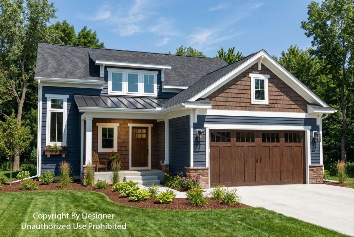 Material Matters: Eight-foot ceilings on the second floor keep construction costs reasonable while still feeling open, especially in the loft, where furniture arrangement can shift the space from media room to workspace. Pairing drywall with exposed wood beams is a common upgrade on farmhouse builds at this ceiling height, adding visual depth without structural complexity. It’s a small decision that reads large once the room is furnished.
