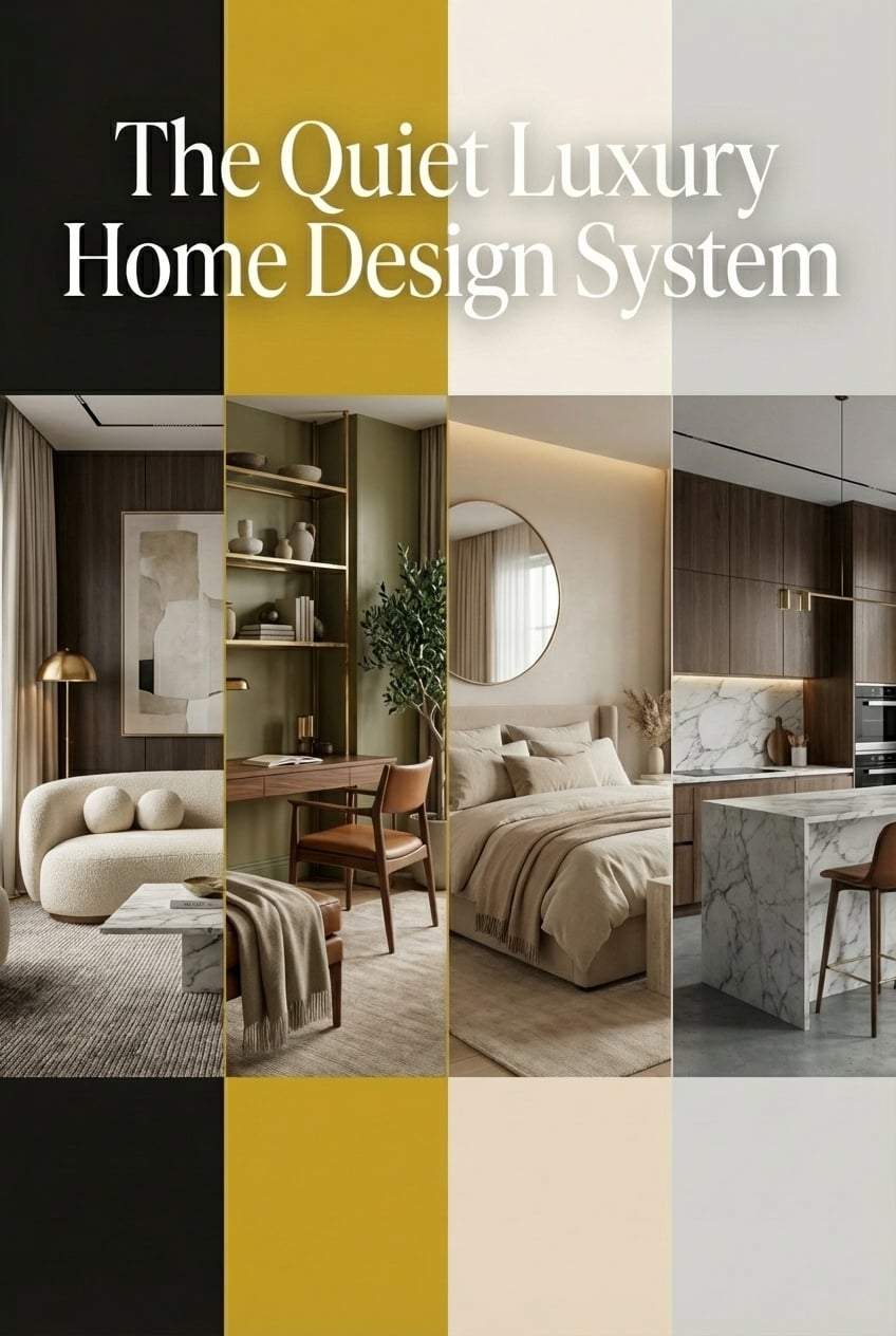 The Quiet Luxury Home Design System closes that gap — completely, for every room in your home. The philosophy from first principles, translated into specific palettes, material hierarchies, lighting standards, and room-by-room decisions you can act on immediately.