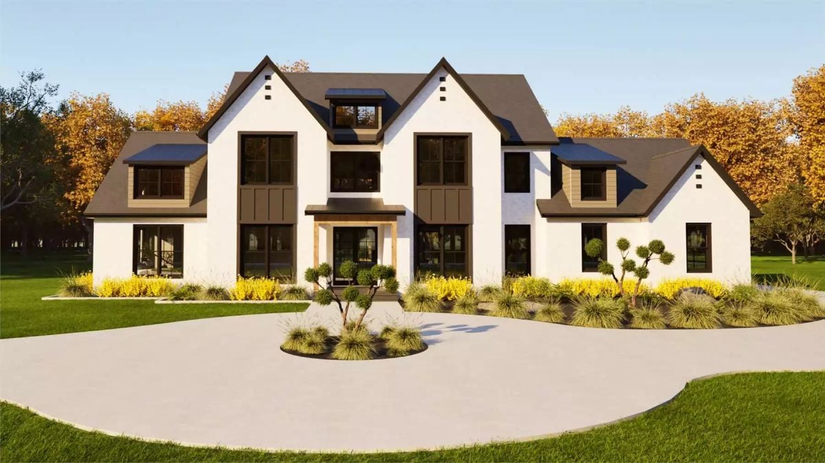 This French country home combines a striking exterior with a layout that feels open, functional, and thoughtfully separated. The main level features a central great room with tall ceilings and a wide connection to the kitchen, creating a comfortable space for everyday life and hosting.