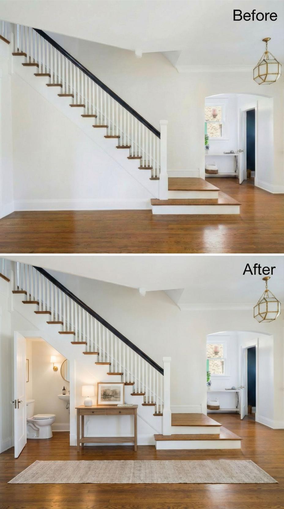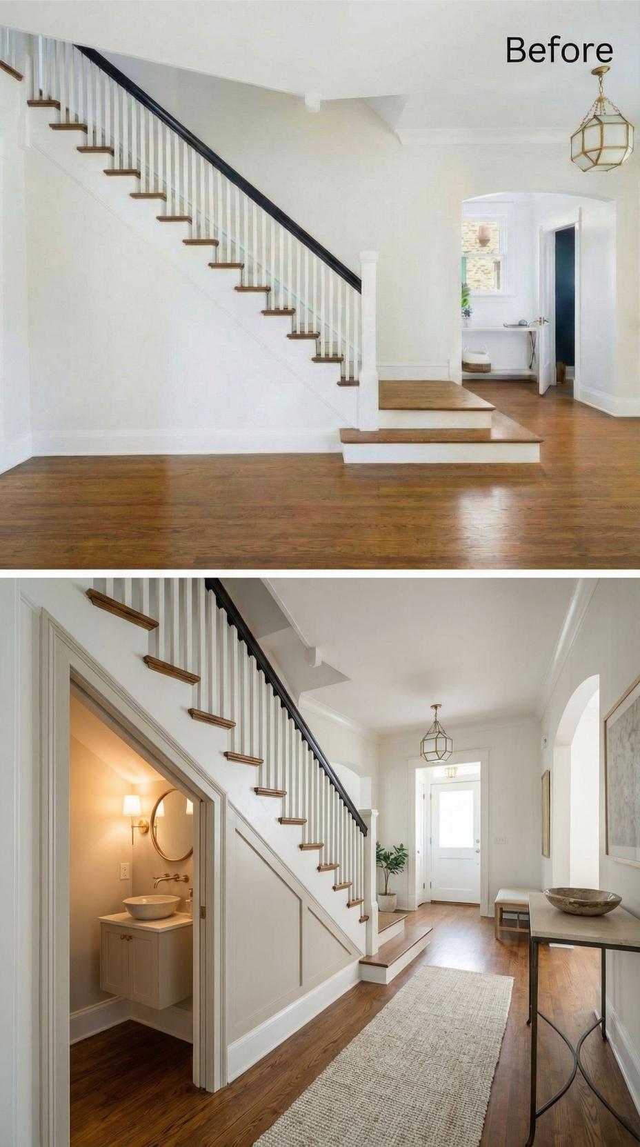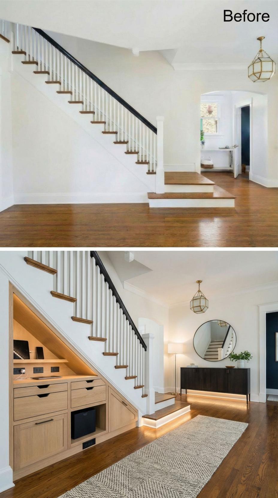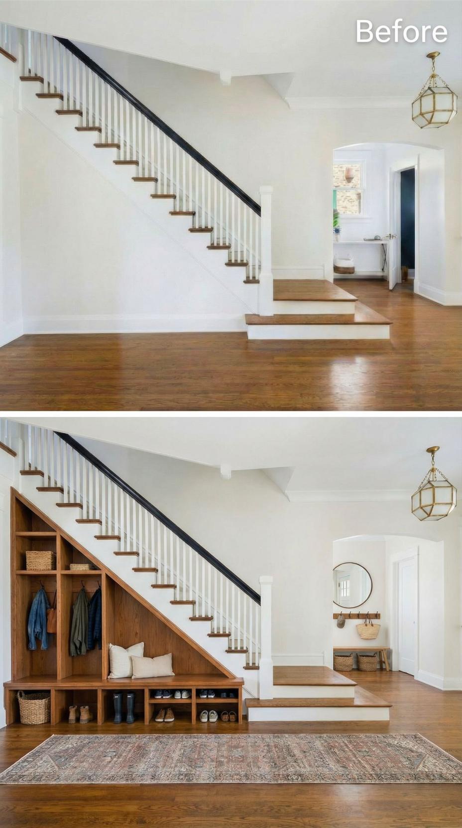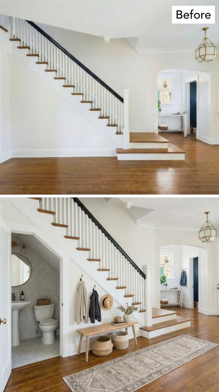 That awkward, wasted space under the stairs doesn’t have to stay empty—or worse, collect clutter. With a little creativity and smart design, it can become one of the hardest-working spots in your home. From compact bathrooms and tiny offices to mudroom lockers, storage walls, and cozy nooks, these before-and-after transformations show how homeowners are turning under-stair dead zones into functional, good-looking spaces that actually earn their square footage.
