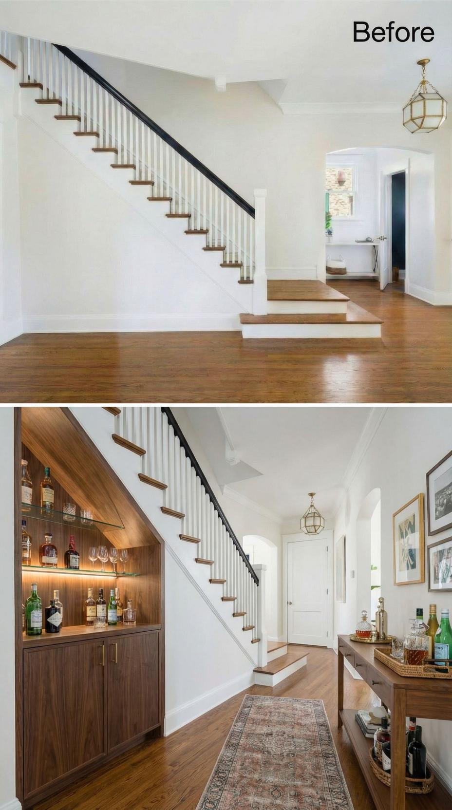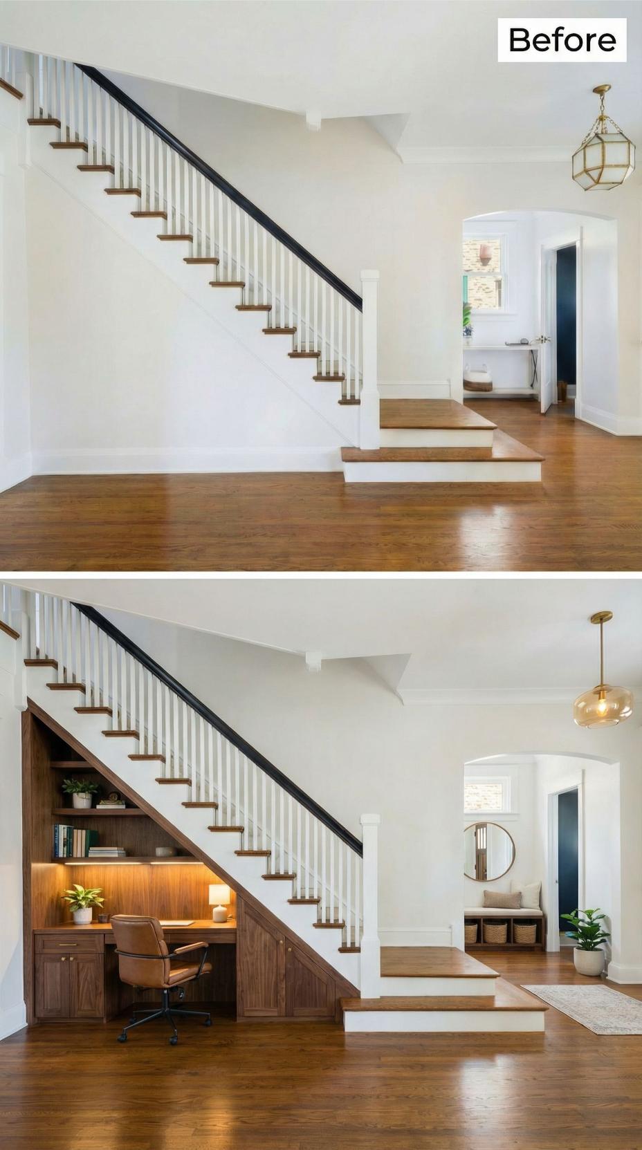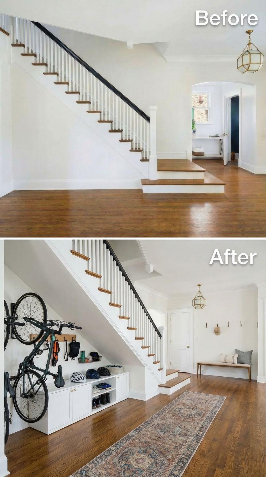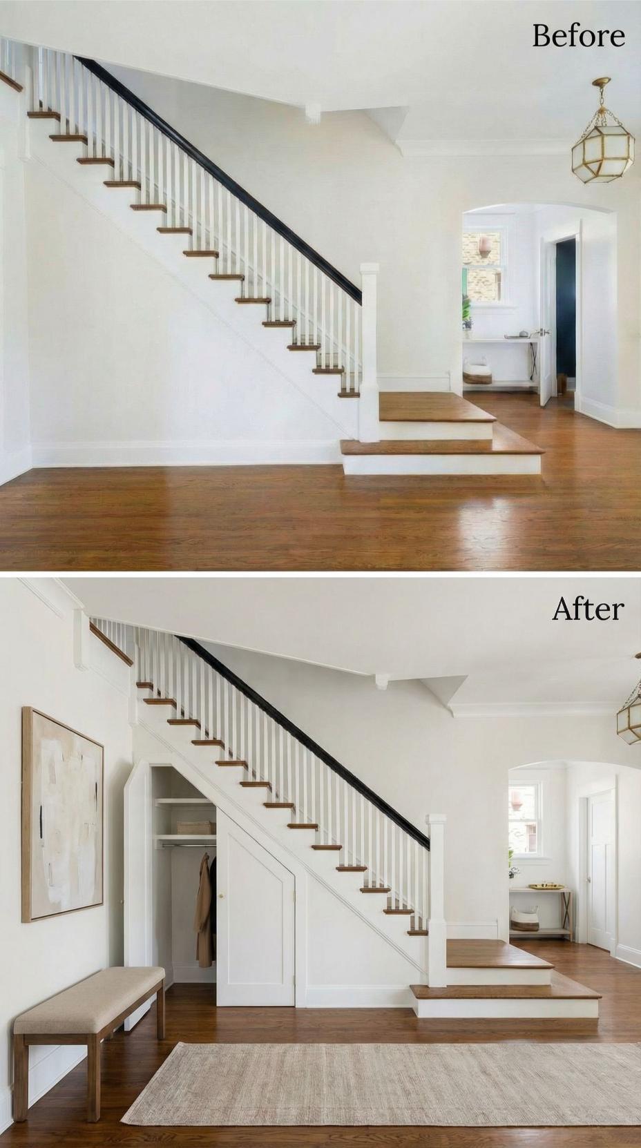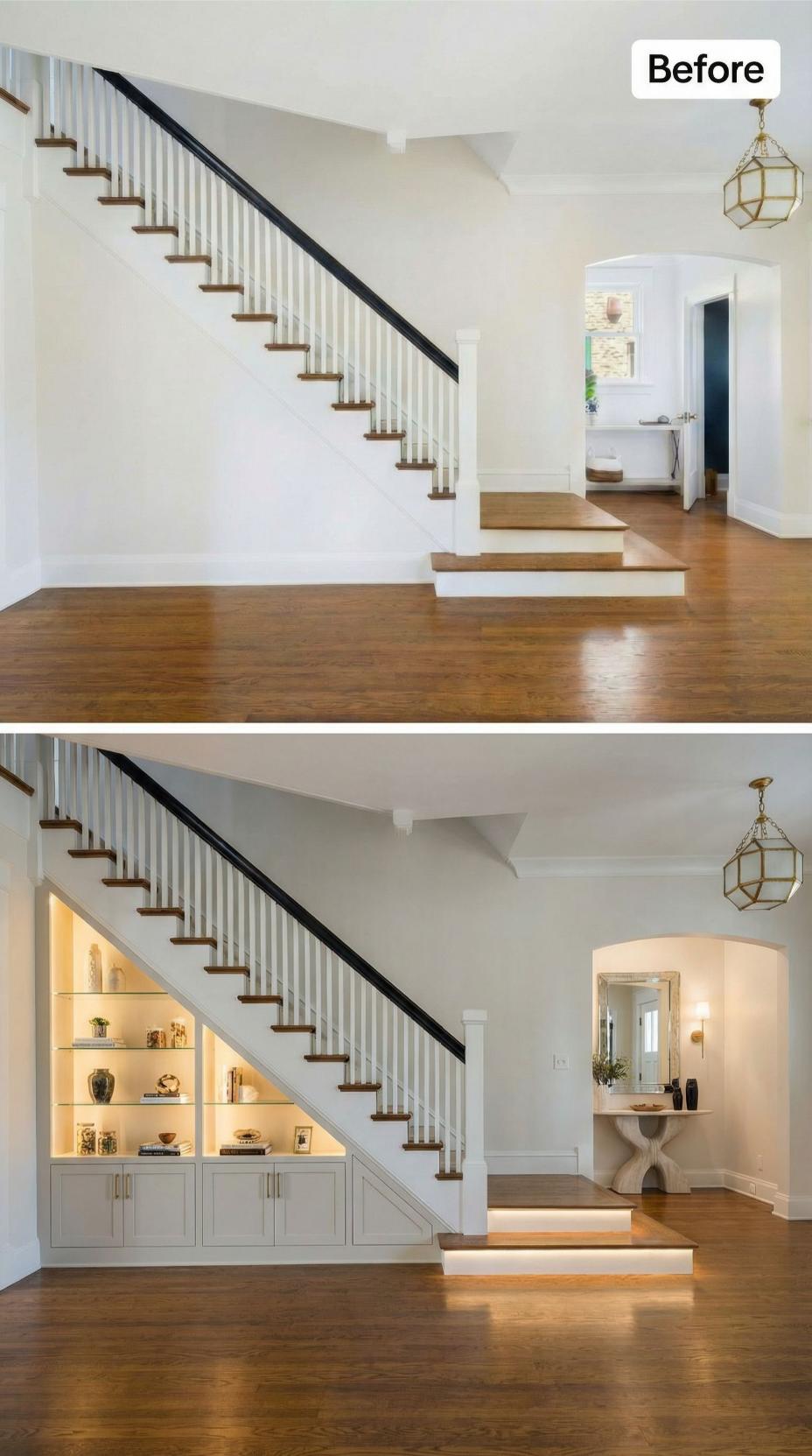 That awkward, wasted space under the stairs doesn’t have to stay empty—or worse, collect clutter. With a little creativity and smart design, it can become one of the hardest-working spots in your home. From compact bathrooms and tiny offices to mudroom lockers, storage walls, and cozy nooks, these before-and-after transformations show how homeowners are turning under-stair dead zones into functional, good-looking spaces that actually earn their square footage.