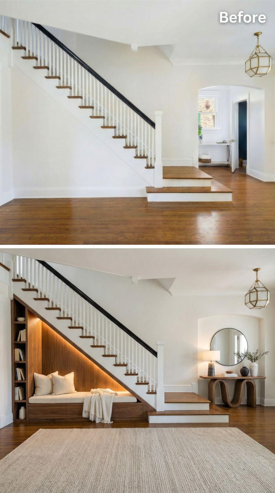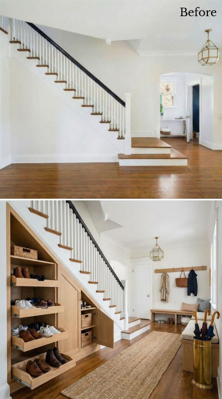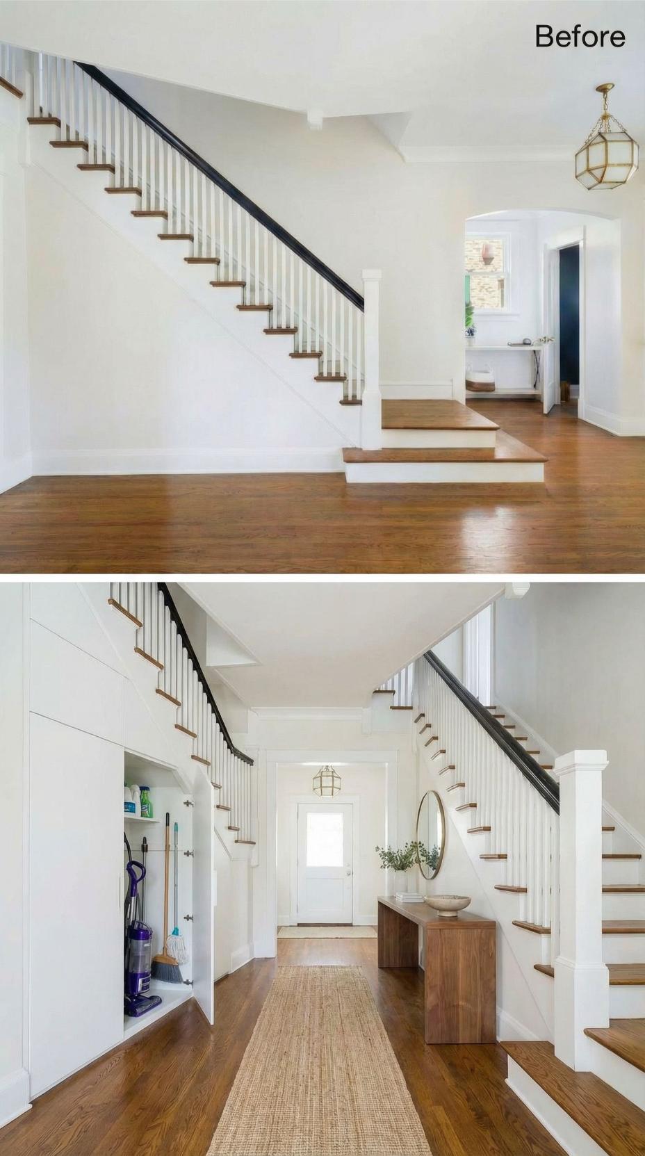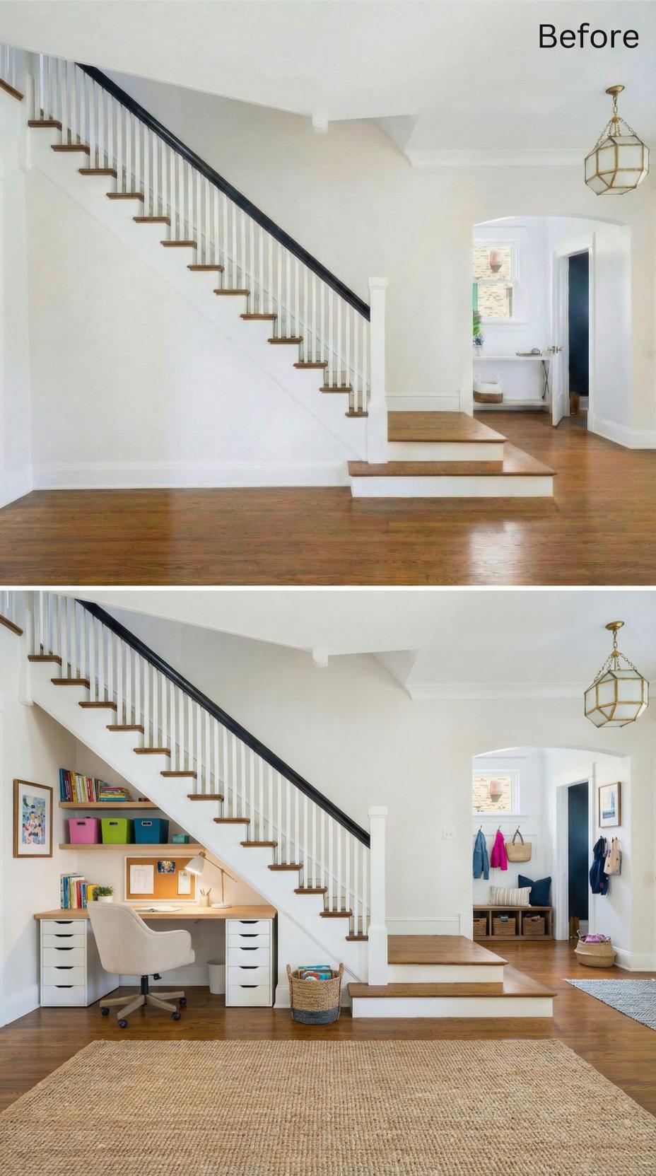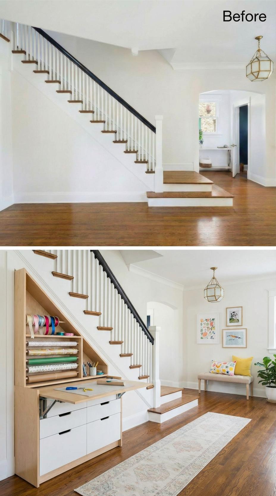 That awkward, wasted space under the stairs doesn’t have to stay empty—or worse, collect clutter. With a little creativity and smart design, it can become one of the hardest-working spots in your home. From compact bathrooms and tiny offices to mudroom lockers, storage walls, and cozy nooks, these before-and-after transformations show how homeowners are turning under-stair dead zones into functional, good-looking spaces that actually earn their square footage.