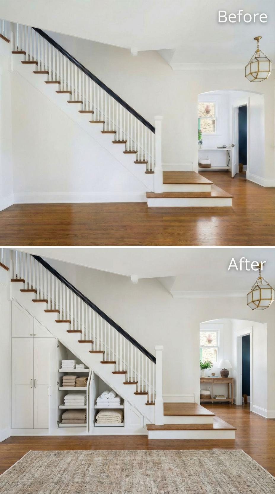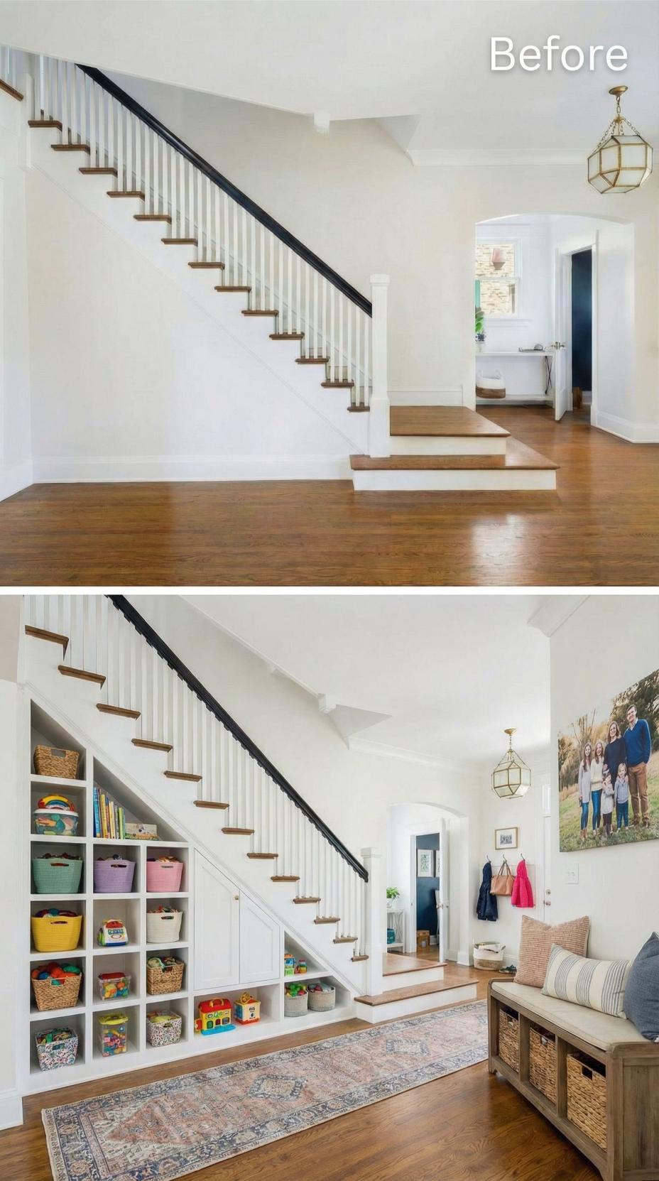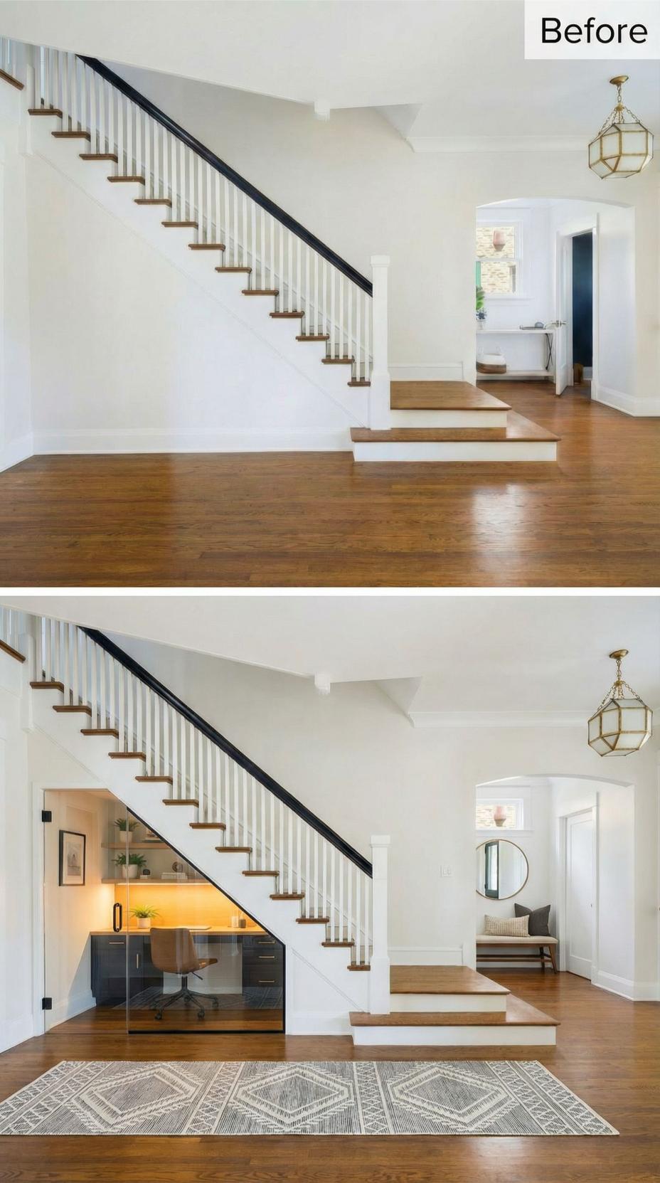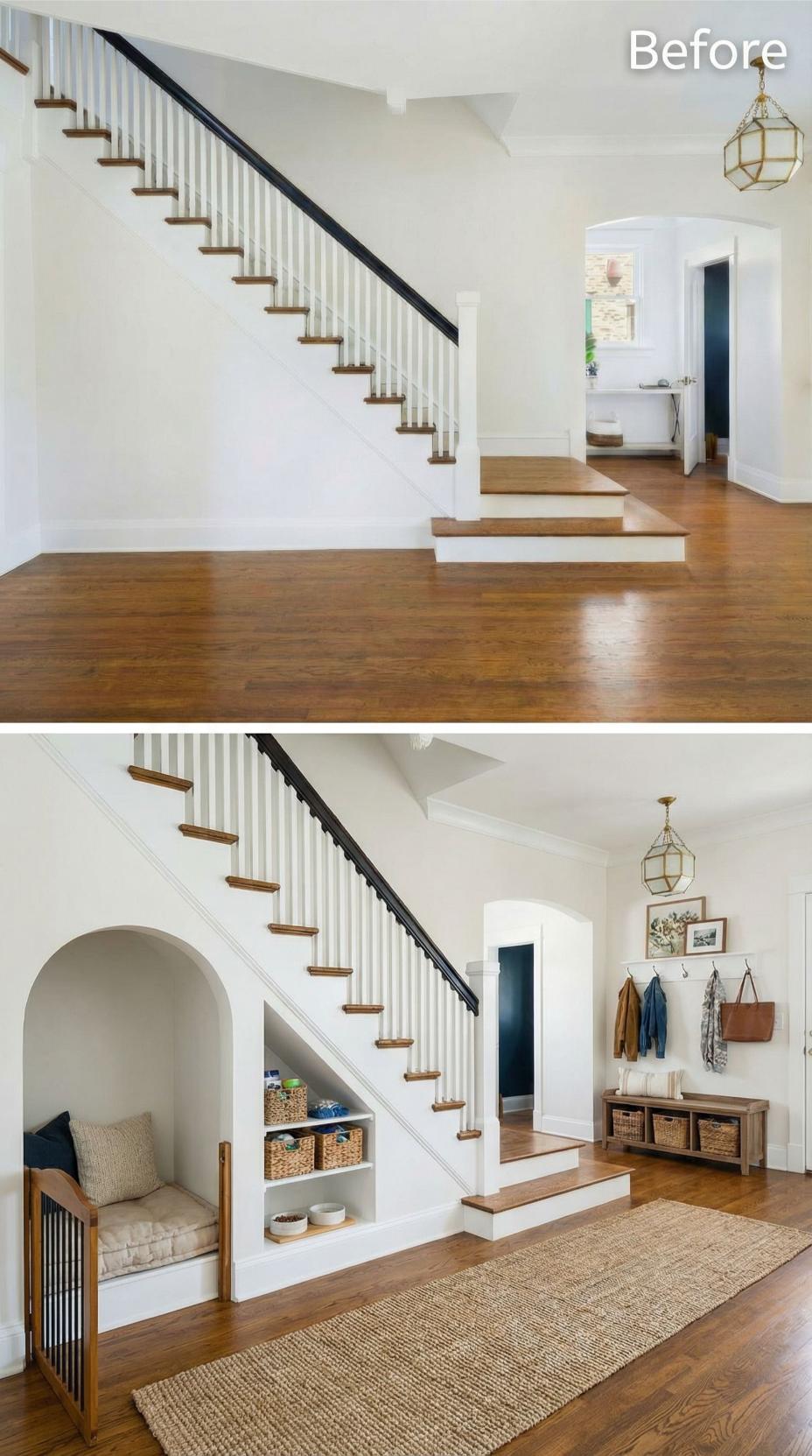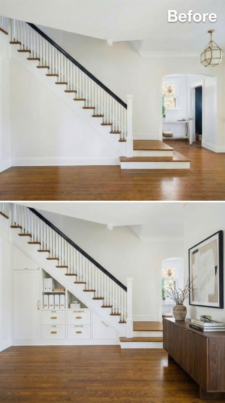That awkward, wasted space under the stairs doesn’t have to stay empty—or worse, collect clutter. With a little creativity and smart design, it can become one of the hardest-working spots in your home. From compact bathrooms and tiny offices to mudroom lockers, storage walls, and cozy nooks, these before-and-after transformations show how homeowners are turning under-stair dead zones into functional, good-looking spaces that actually earn their square footage.