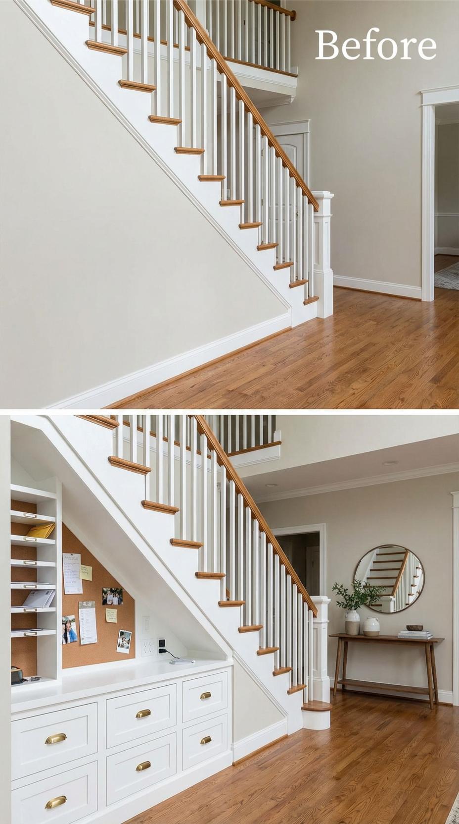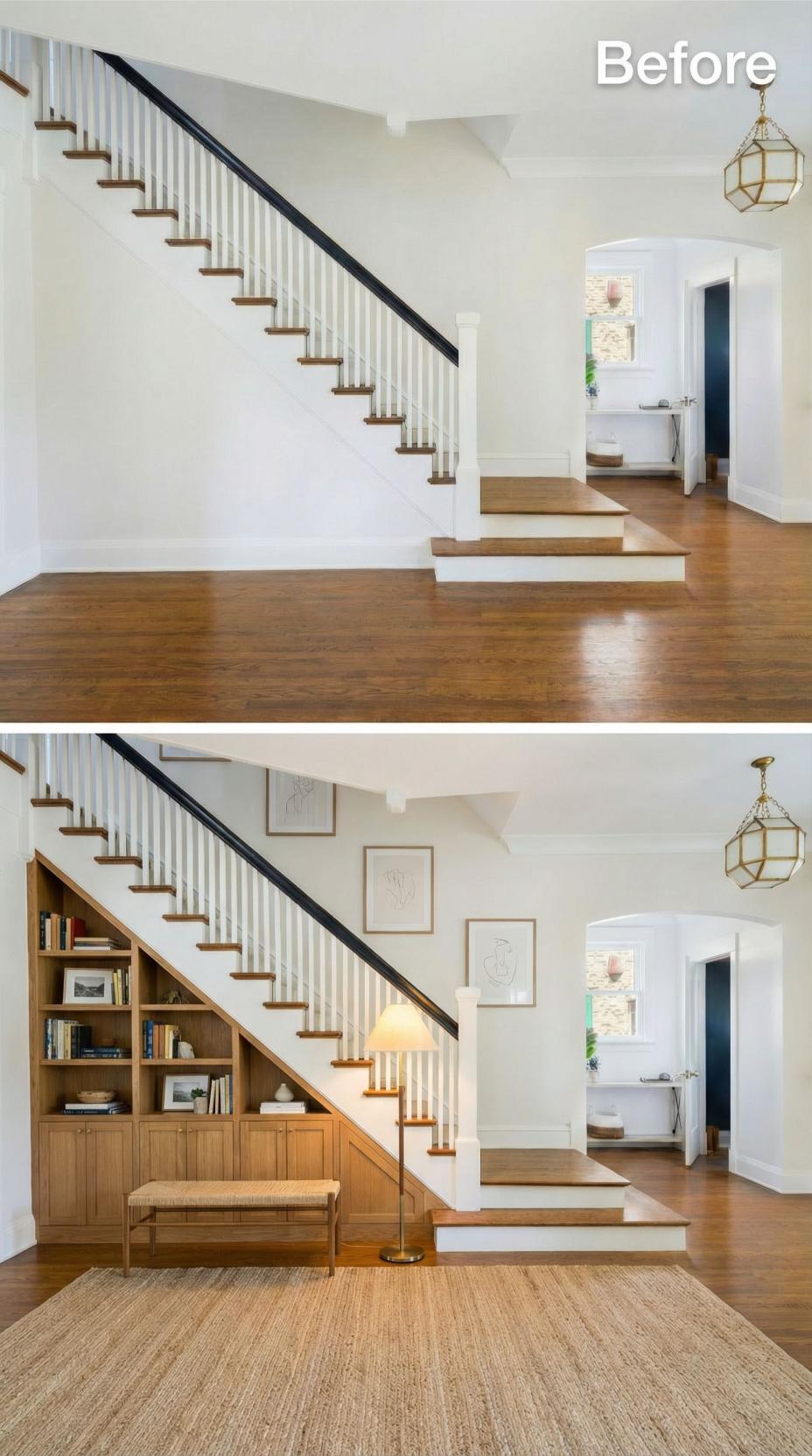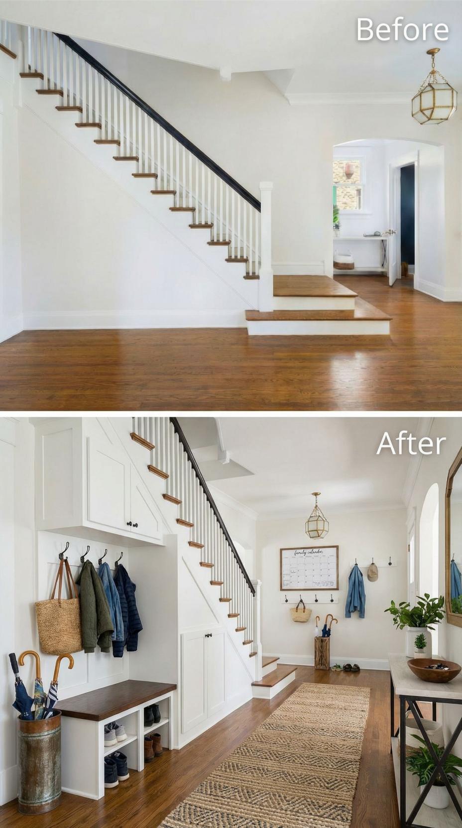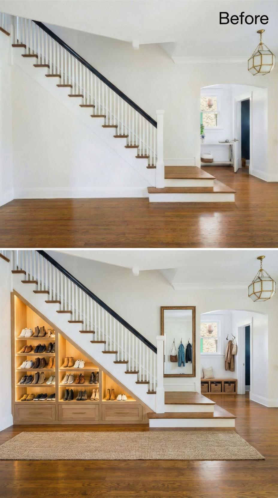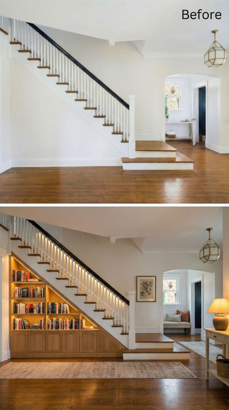 That awkward, wasted space under the stairs doesn’t have to stay empty—or worse, collect clutter. With a little creativity and smart design, it can become one of the hardest-working spots in your home. From compact bathrooms and tiny offices to mudroom lockers, storage walls, and cozy nooks, these before-and-after transformations show how homeowners are turning under-stair dead zones into functional, good-looking spaces that actually earn their square footage.
