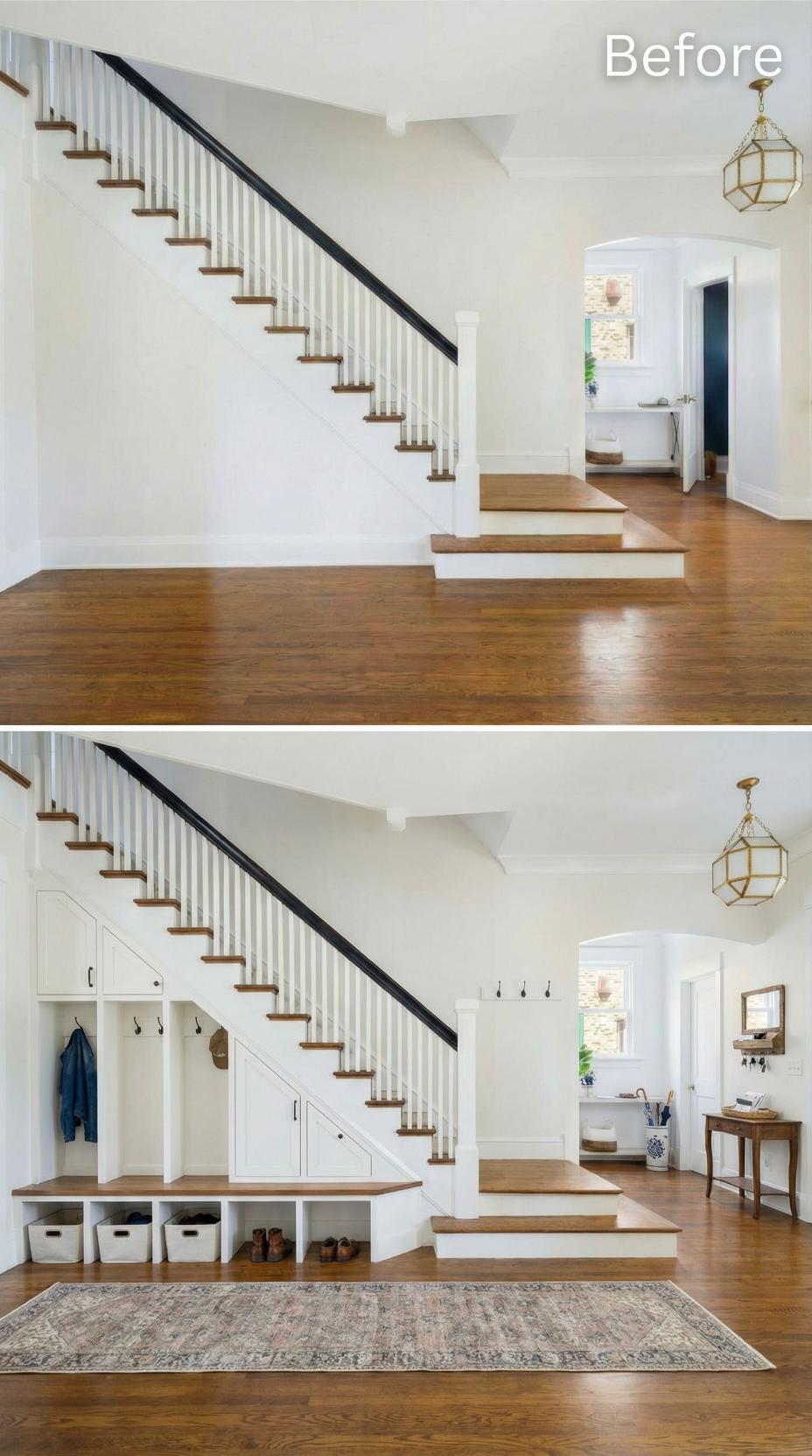 From Plain Walled-In Staircase to Multi-Functional Entryway Storage Hub
