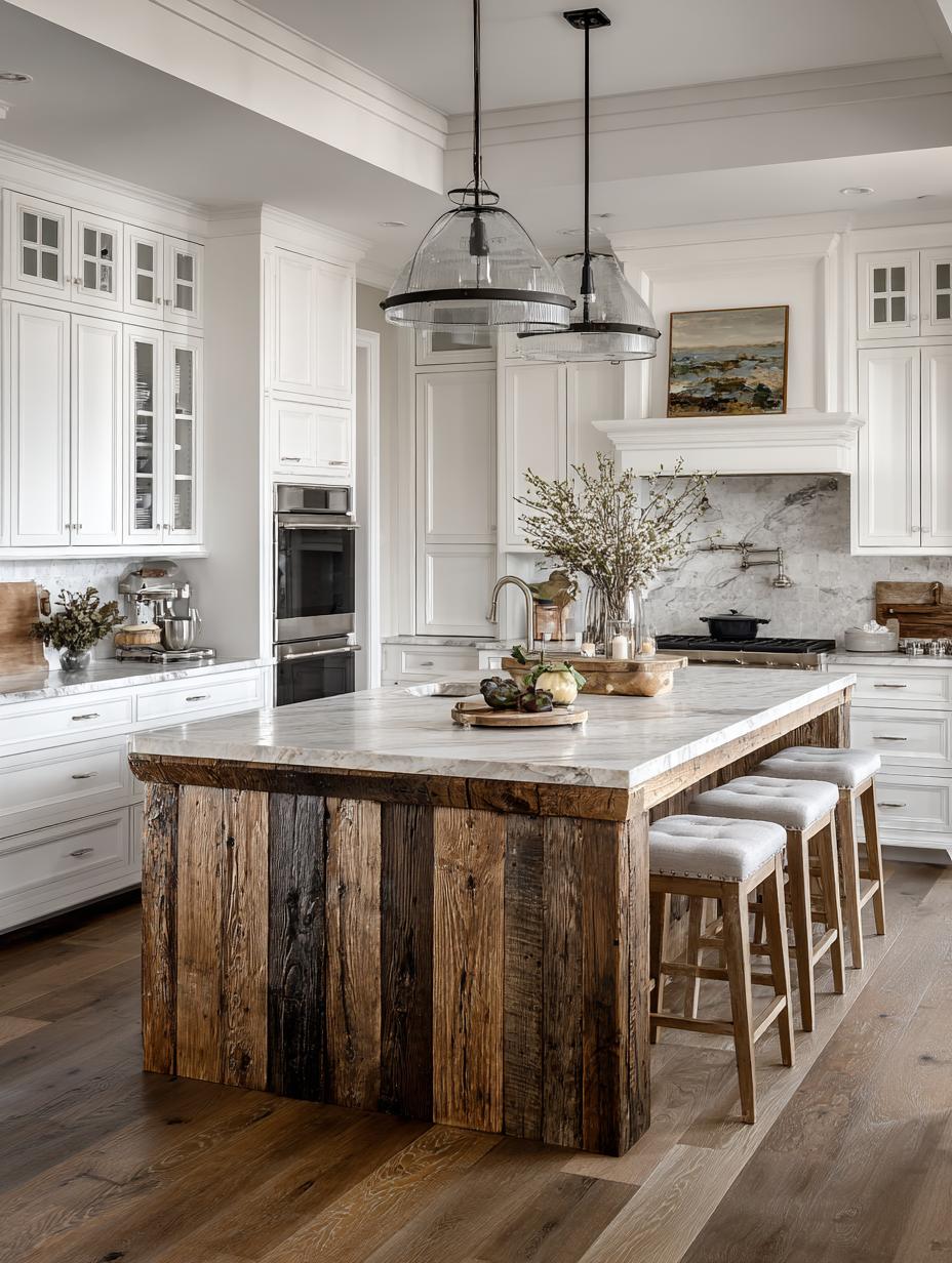 Rustic Charm Meets Modern Elegance in Reclaimed Wood Kitchen Island Design